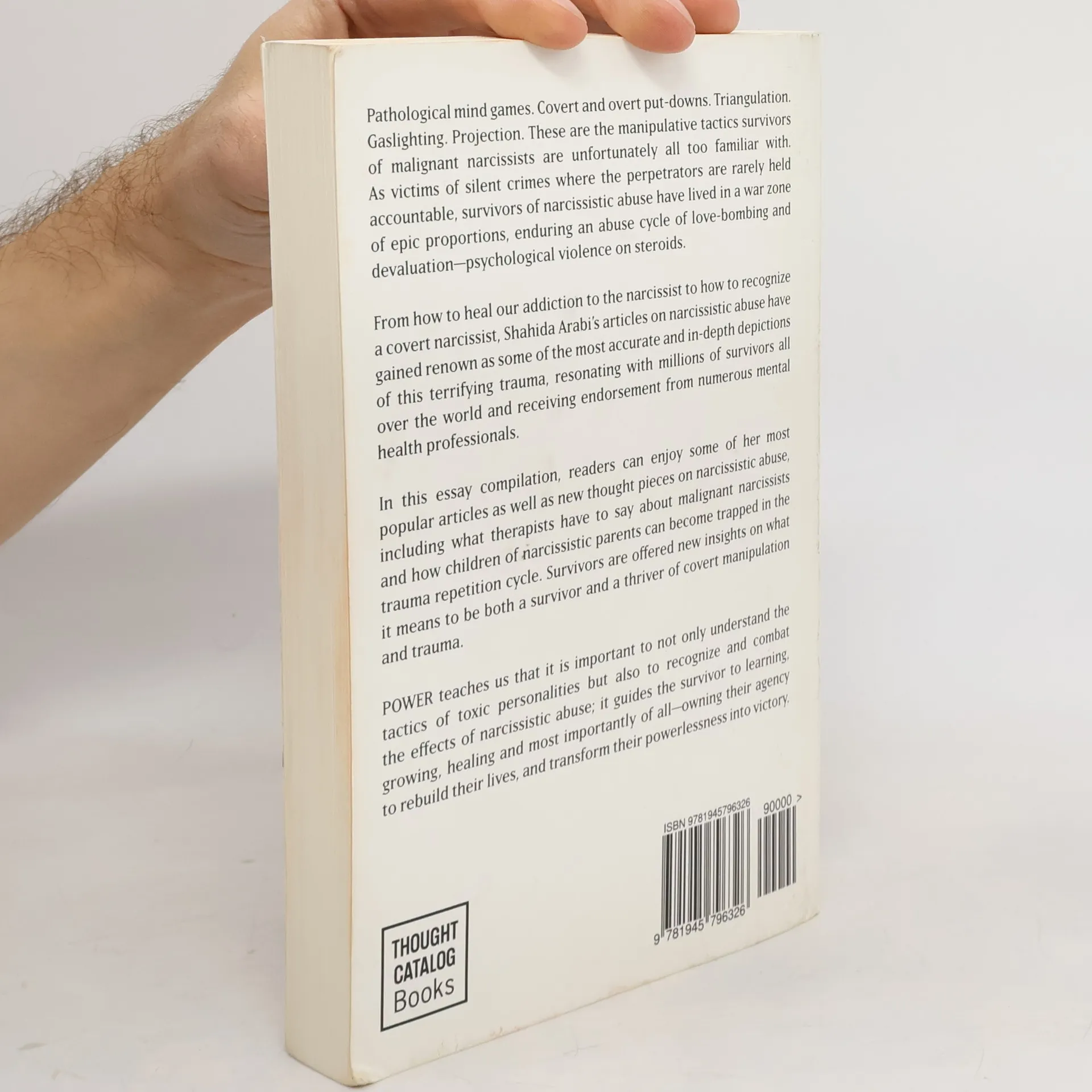 "Pathological mind games. Covert and overt put-downs. Triangulation. Gaslighting. Projection. These are the manipulative tactics survivors of malignant narcissists are unfortunately all too familiar with. As victims of silent crimes where the perpetrators are rarely held accountable, survivors of narcissistic abuse have lived in a war zone of epic proportions, enduring an abuse cycle of love-bombing and devaluation--psychological violence on steroids. From how to heal our addiction to the narcissist to how to recognize a covert narcissist, Shahida Arabi's articles on narcissistic abuse have gained renown as some of the most accurate and in-depth depictions of this terrifying trauma, resonating with millions of survivors all over the world and receiving endorsements from numerous mental health professionals. In this essay compilation, readers can enjoy some of her most popular articles as well as new thought pieces on narcissistic abuse: what therapists have to say about malignant narcissists and how children of narcissistic parents can become trapped in the trauma repetition cycle. Survivors are offered new insights on what it means to be both a survivor and a thriver of covert manipulation and trauma. POWER teaches us that it is important to not only understand the tactics of toxic personalities but also to recognize and combat the effects of narcissistic abuse; it guides the survivor to learning, growing, healing and most importantly of all--owning their agency to rebuild their lives and transform their powerlessness into victory."--Back cover
