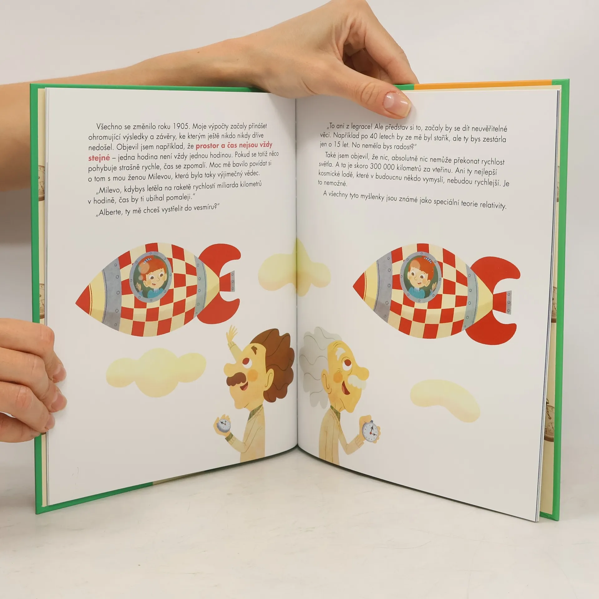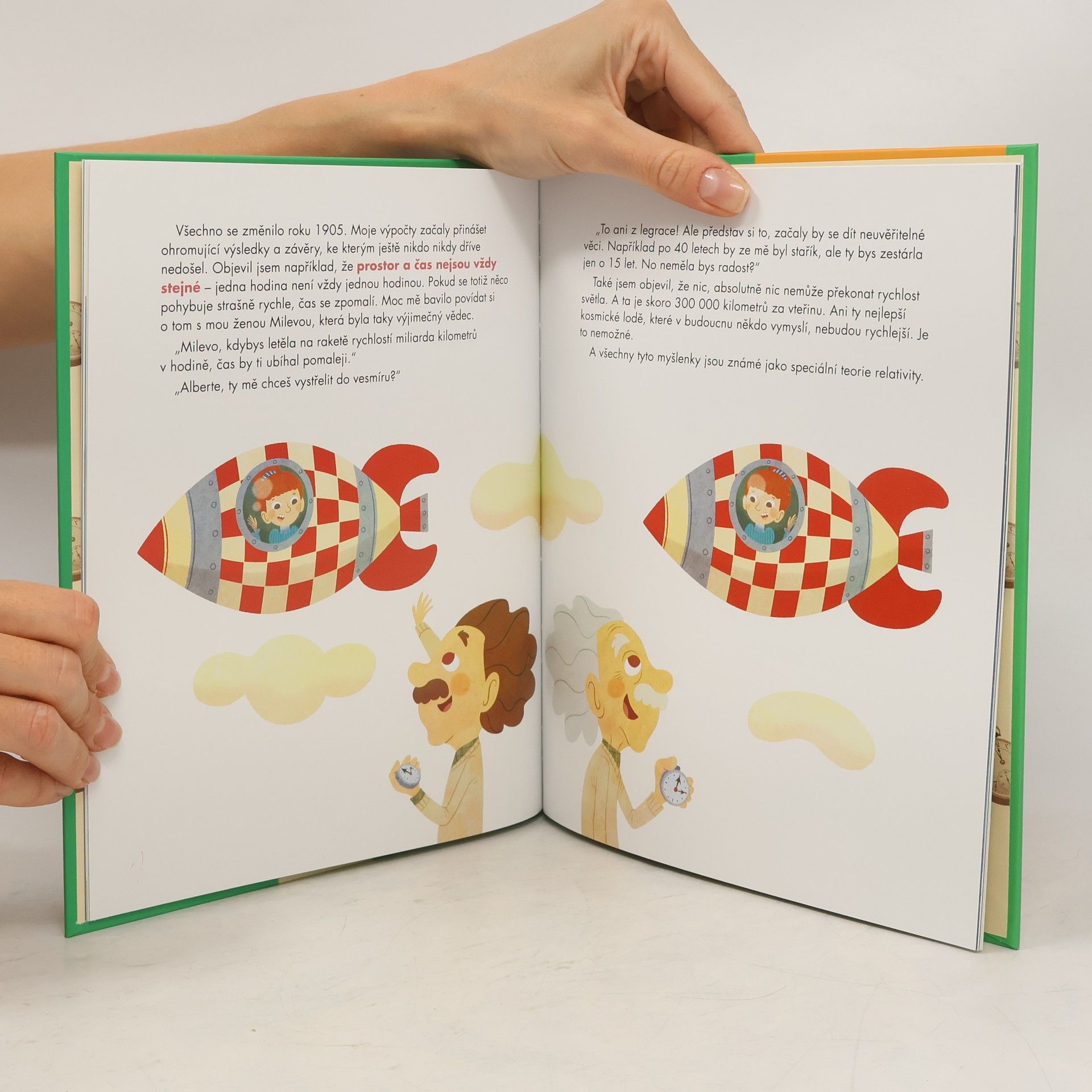 A takový byl i Albert Einstein. Jeho mimořádnou schopností byla neobyčejná touha přijít na to, proč jsou věci takové, jaké jsou. Jeho znalosti matematiky a zdravá dávka intuice byly obdivuhodné. Díky svým schopnostem objevil teorii relativity, která prokázala, že čas a prostor nejsou vždy pro všechny stejné. Tento a mnohé další jedinečné objevy z něj udělaly nejdůležitějšího vědce 20. století a možná i celé historie. Takové byly jeho úspěchy a toto je jeho příběh.