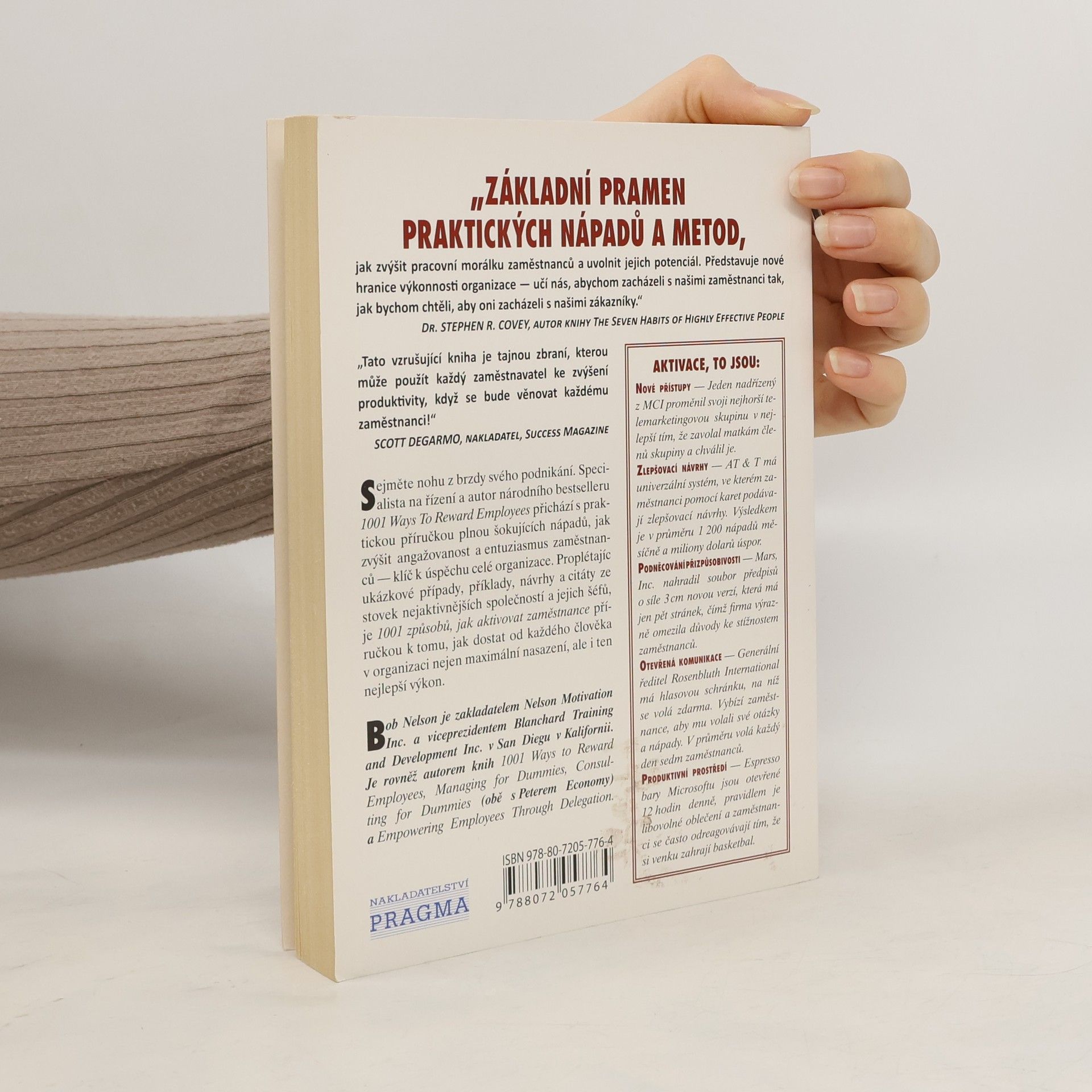 Autor mnoha světových bestsellerů radí zaměstnavatelům, co udělat pro to, aby dostali ze svých zaměstnanců to nejlepší. Bob Nelson poskytuje mnoho užitečných a praktických rad, které pomohou k většímu úspěchu v jakémkoli podnikání. Tyto návrhy a nápady dnes s úspěchem používají manažeři po celé Americe.