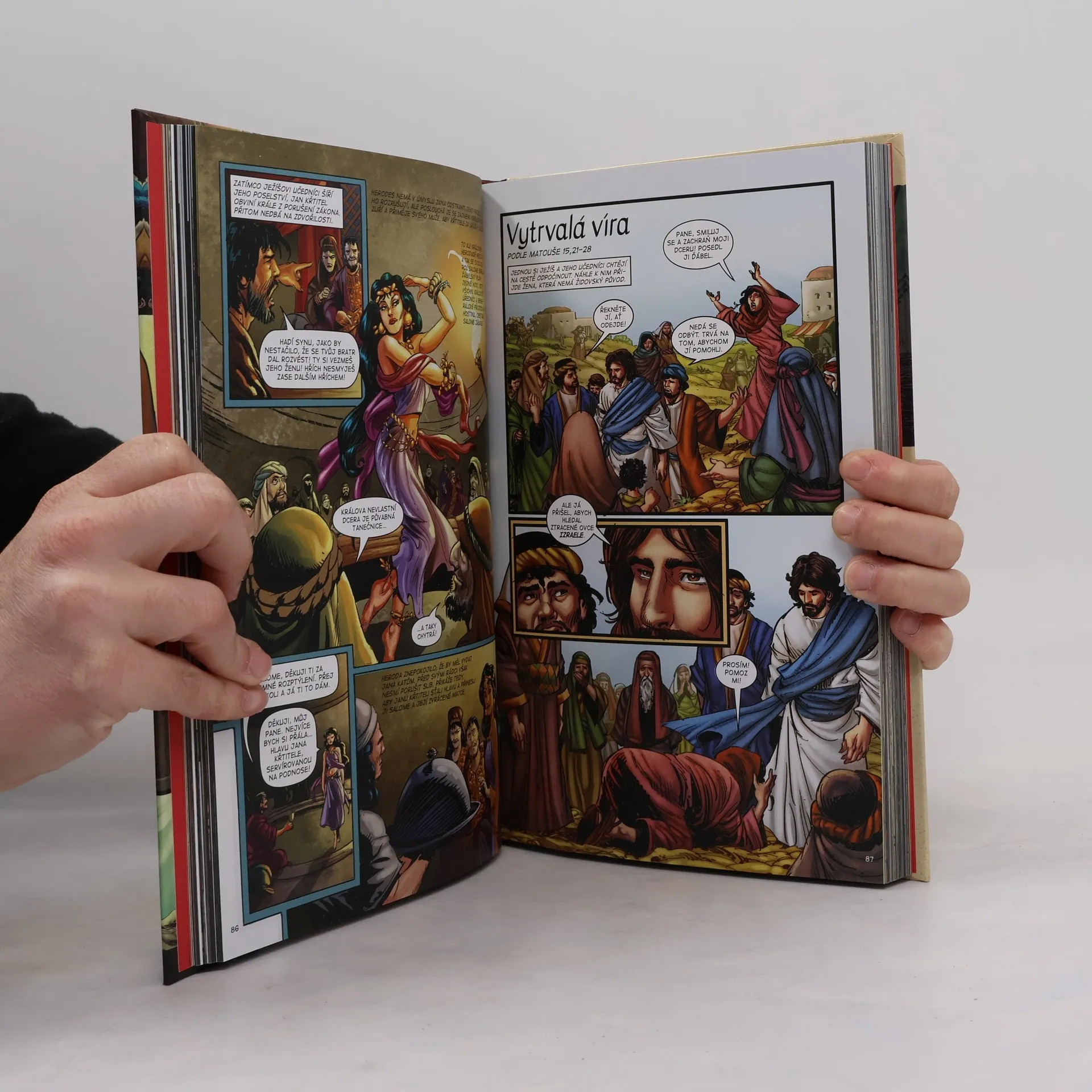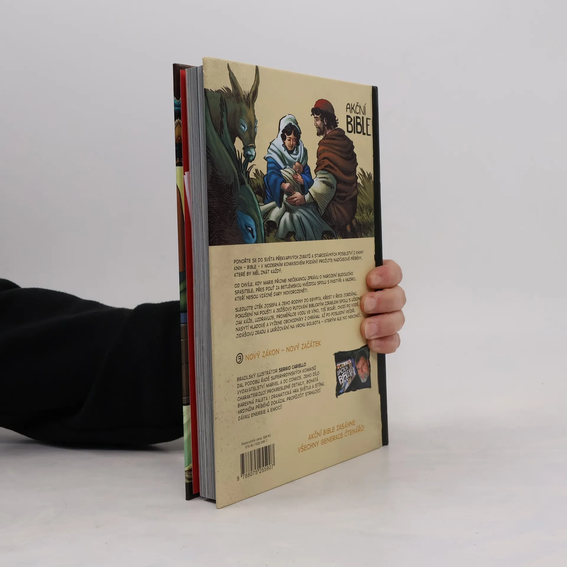 Ponořte se do světa překvapivých zvratů a starodávných poselství z knihy knih - Bible - v moderním komiksovém podání! Prožijte nadčasové příběhy, které by měl znát každý: Od chvíle, kdy Marie přijme nečekanou zprávu o narození budoucího Spasitele, přes pouť za Betlémskou hvězdou spolu s pastýři a mudrci, kteří nesou vzácné dary novorozeněti. Sledujte útěk Josefa a jeho rodiny do Egypta, křest v řece Jordánu, pokušení na poušti a Ježíšovo putování biblickým Izraelem spolu s učedníky. Jak káže, uzdravuje, proměňuje vodu ve víno, tiší bouři, chodí po vodě, nasytí hladové a vyžene obchodníky z chrámu. Až po poslední večeři, Jidášovu zradu a ukřižování na vrchu Golgota - kterým ale nic nekončí… Brazilský ilustrátor Sergio Cariello dal podobu řadě superhrdinských komiksů vydavatelství Marvel a DC Comics. Jeho dílo charakterizují prokreslené detaily, bohatá barevná paleta i dramatická hra světla a stínu. Hrdinům příběhů dokázal propůjčit strhující dávku energie a emocí!