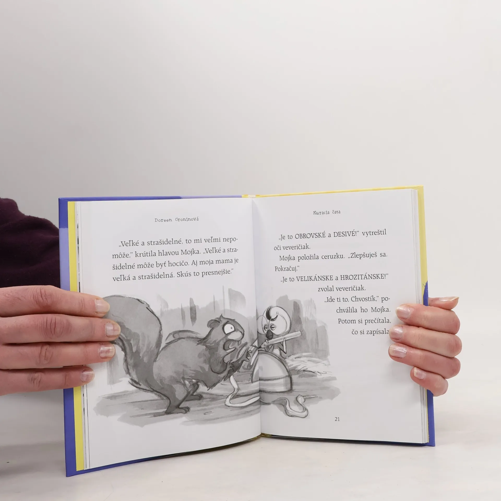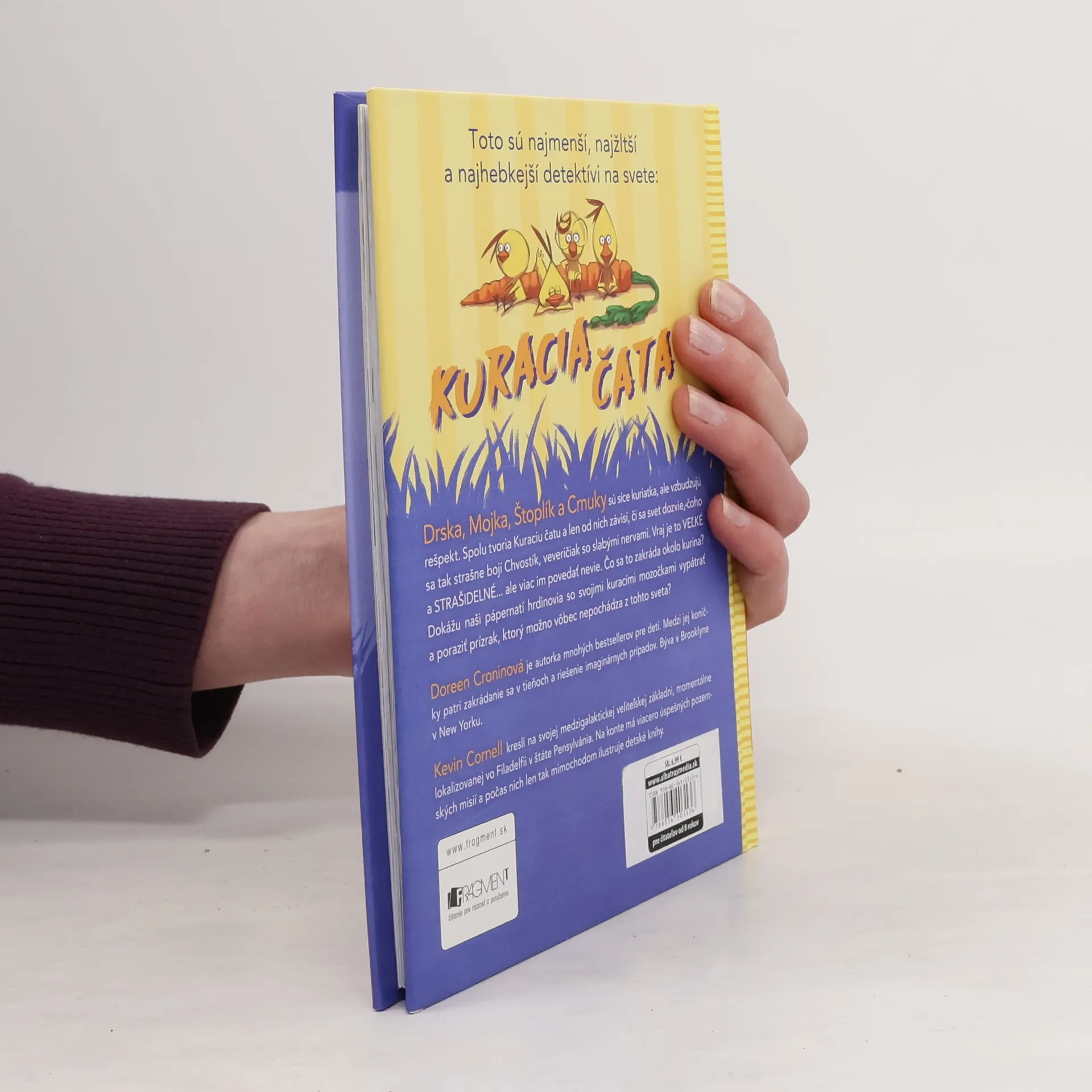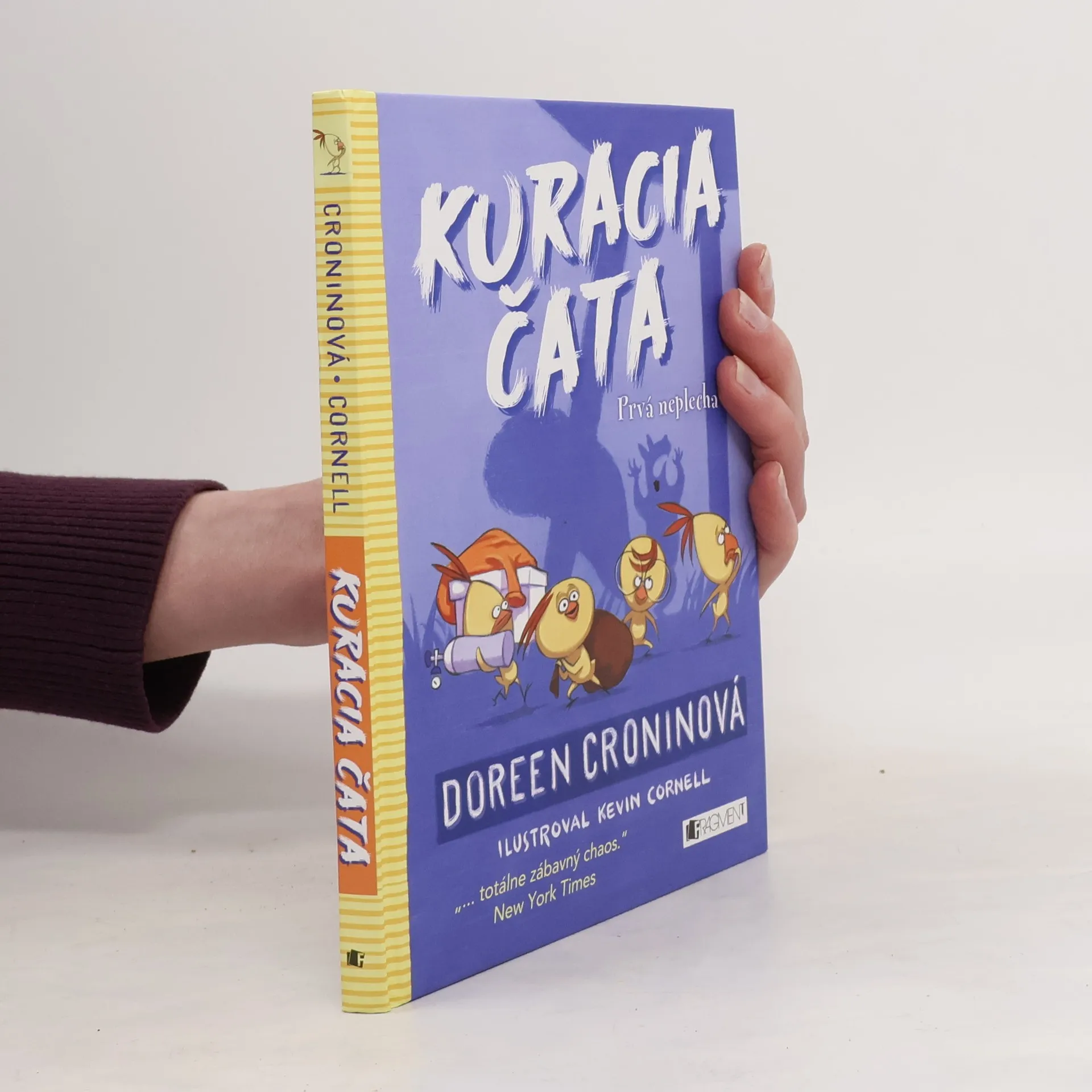 Prvý prípad najmenších, najžltších a najhebkejších detektívov na svete. Drska, Mojka, Štoplík a Cmuky sú síce kuriatka, ale vzbudzujú rešpekt. Spolu tvoria Kuraciu čatu a len od nich závisí, či sa svet dozvie, čoho sa tak strašne bojí Chvostík, veveričiak so slabými nervami. Vraj je to VEĽKÉ a STRAŠIDELNÉ... ale viac im povedať nevie. Čo sa to zakráda okolo kurína? Dokážu naši pápernatí hrdinovia so svojimi kuracími mozočkami vypátrať a poraziť prízrak, ktorý možno vôbec nepochádza z tohto sveta?
