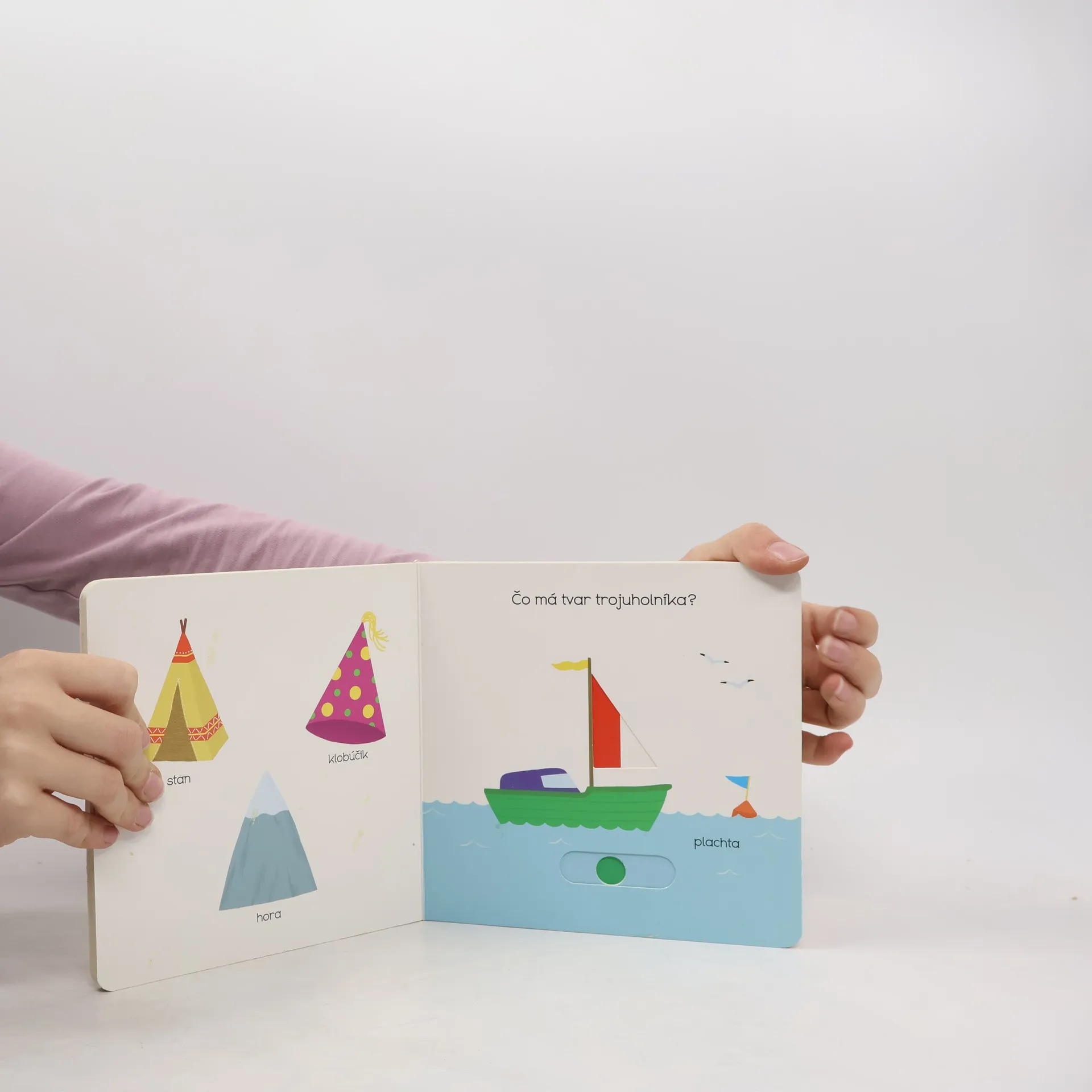 Štvorec, kruh, trojuholník ... Poznávame tvary! Leporelo pre najmenšie deti s posuvnými prvkami a pestrými ilustráciami.