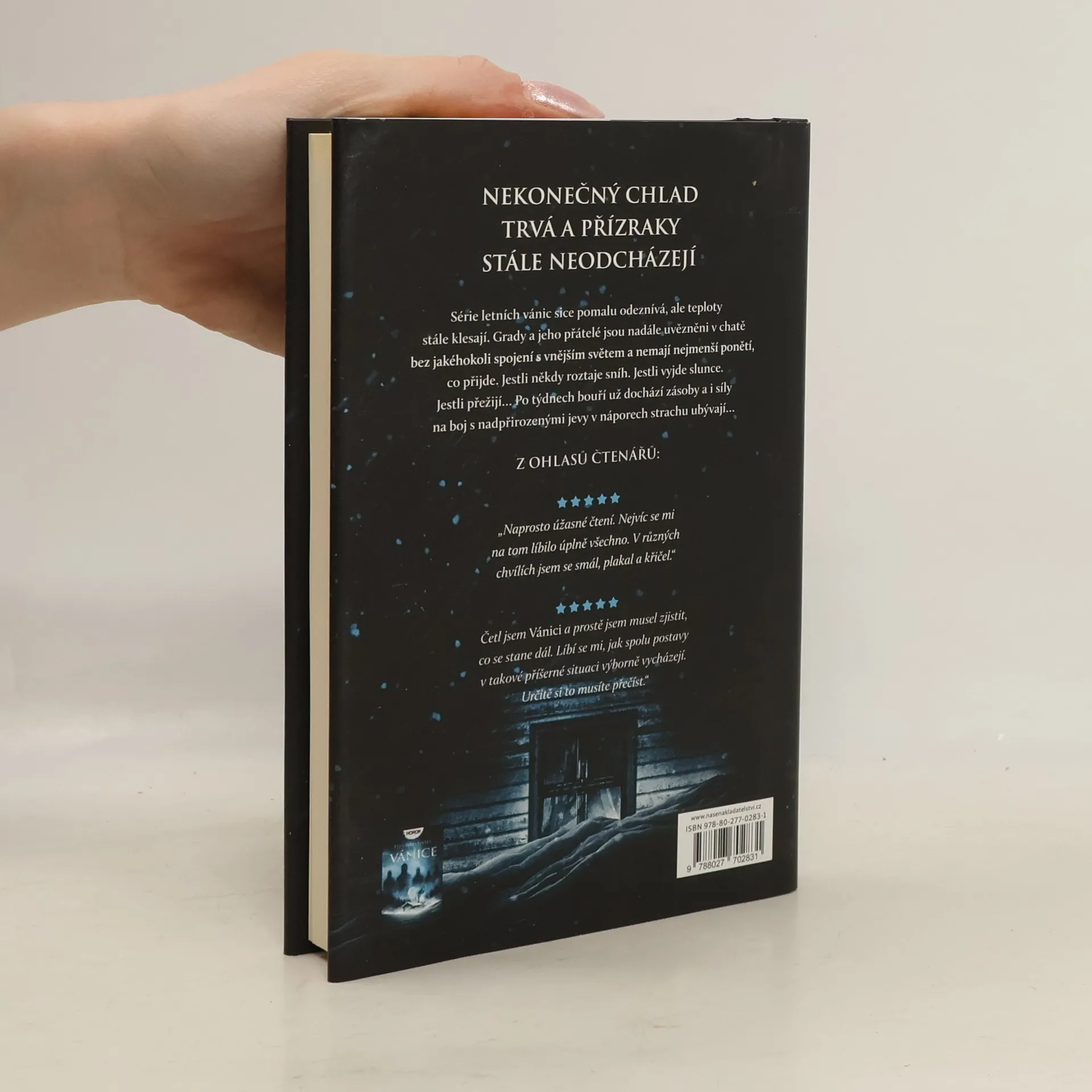 Po sérii neočekávaných letních vánic pomalu ustává sněžení, ale teploty nadále klesají, fouká ledový vítr a s každým dalším dnem je temnota delší a delší. A temnota svědčí přízrakům, které se hrdinům knihy nepřestávají zjevovat. Uvězněni v chatě bez možnosti komunikace s vnějším světem žijí Grady a jeho přátelé v neustálém strachu z toho, co přinese budoucnost. Roztaje sníh? Vyjde ještě někdy slunce? Podaří se jim přemoct přízraky? Dny se mění v týdny a odpovědi na tyto a spoustu dalších otázek nepřichází. Přeživším začínají docházet zásoby i síly, a ať jsou připraveni nebo ne, musí se vydat do zasněžené pustiny. Chtějí-li přežít, musí držet pohromadě, bojovat a čelit svým největším strachům. Vydejte se na cestu s Gradym, Stonem, Eleanor, Mikeym a Helgou ve druhé knize série Bílá tma!