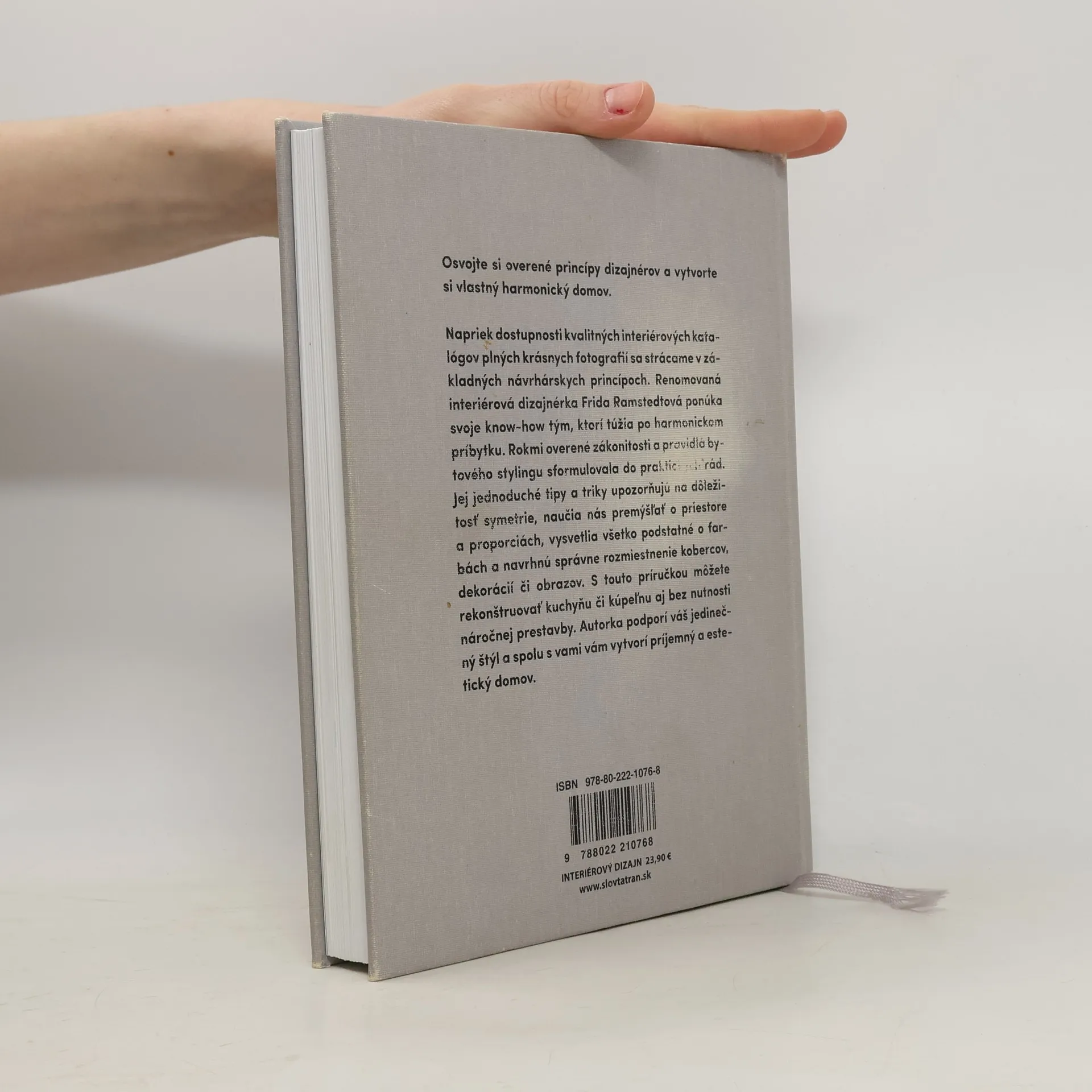 Osvojte si overené princípy dizajnérov a vytvorte si vlastný harmonický domov.Napriek dostupnosti kvalitných interiérových katalógov plných krásnych fotografií sa strácame v základných návrhárskych princípoch.Renomovaná interiérová dizajnérka Frida Ramstedtová ponúka svoje know-how tým, ktorí túžia po harmonickom príbytku. Rokmi overené zákonitosti a pravidlá bytového stylingu sformulovala do praktických rád. Jej jednoduché tipy a triky upozorňujú na dôležitosť symetrie, naučia nás premýšľať o priestore a proporciách, vysvetlia všetko podstatné o farbách a navrhnú správne rozmiestnenie kobercov, dekorácií či obrazov.S touto príručkou môžete rekonštruovať kuchyňu či kúpeľňu aj bez nutnosti náročnej prestavby. Autorka podporí váš jedinečný štýl a spoločne vytvoríte príjemný a estetický domov.