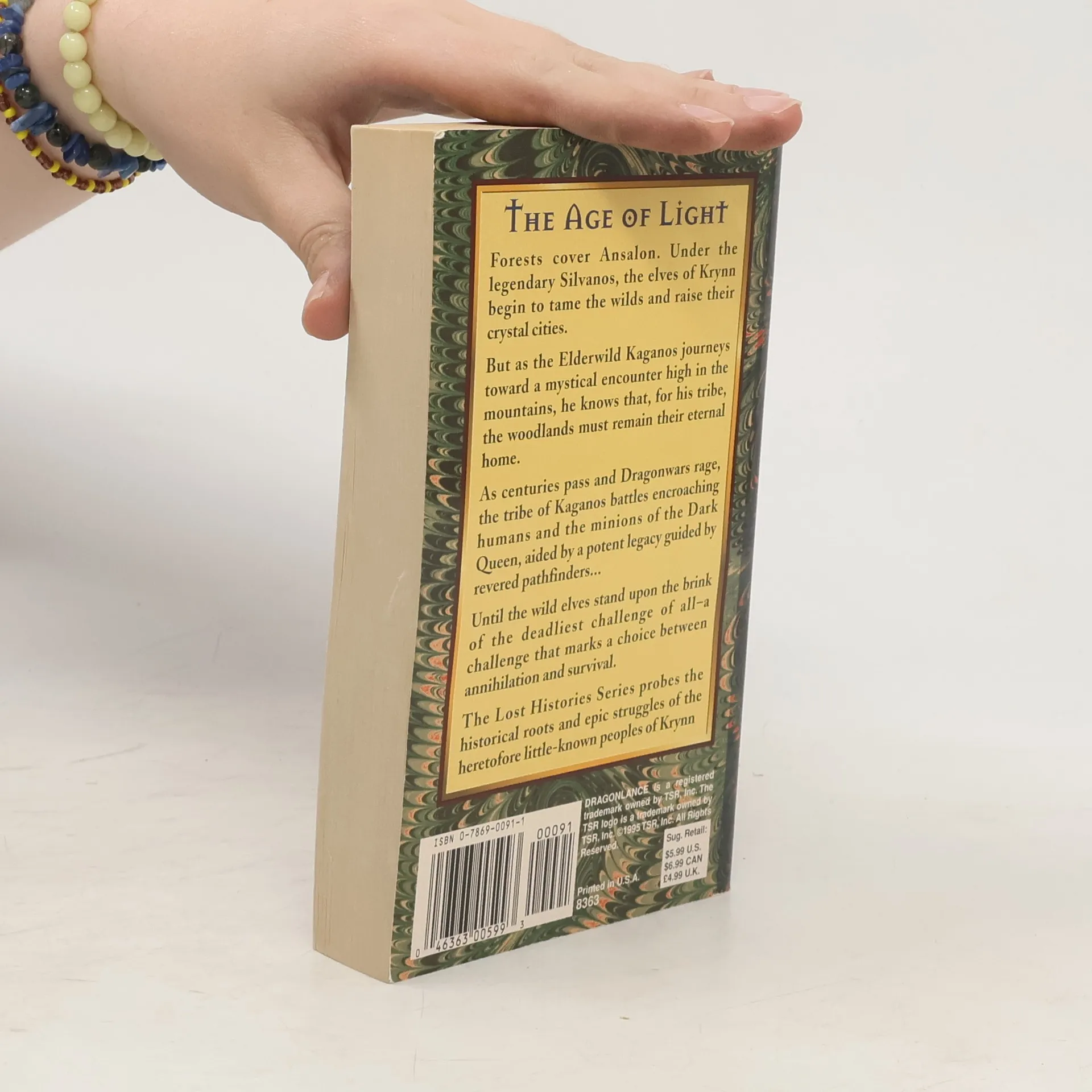 The Age of LightForests cover Ansalon. Under the legendary Silvanos, the elves of Krynn begin to tame the wilds and raise their crystal cities.But as the Elderwild Kaganos jouneys toward a mystical encounter high in the mountains, he knows that, for his tribe, the woodlands must remain their eternal home.As centuries pass and Dragonwars rage, the tribe of Kaganos battles encroaching humans and the minions of the Dark Queen, aided by a potent lgacy guided by revered pathfinders . . .Until the wild elves stand upon the brink of the deadliest challenge of all -- a challenge that marks a choice between annilhilation and survival.The Lost Histories Series probes the historical roots and epic struggles of the heretofore little-known peoples of Krynn.