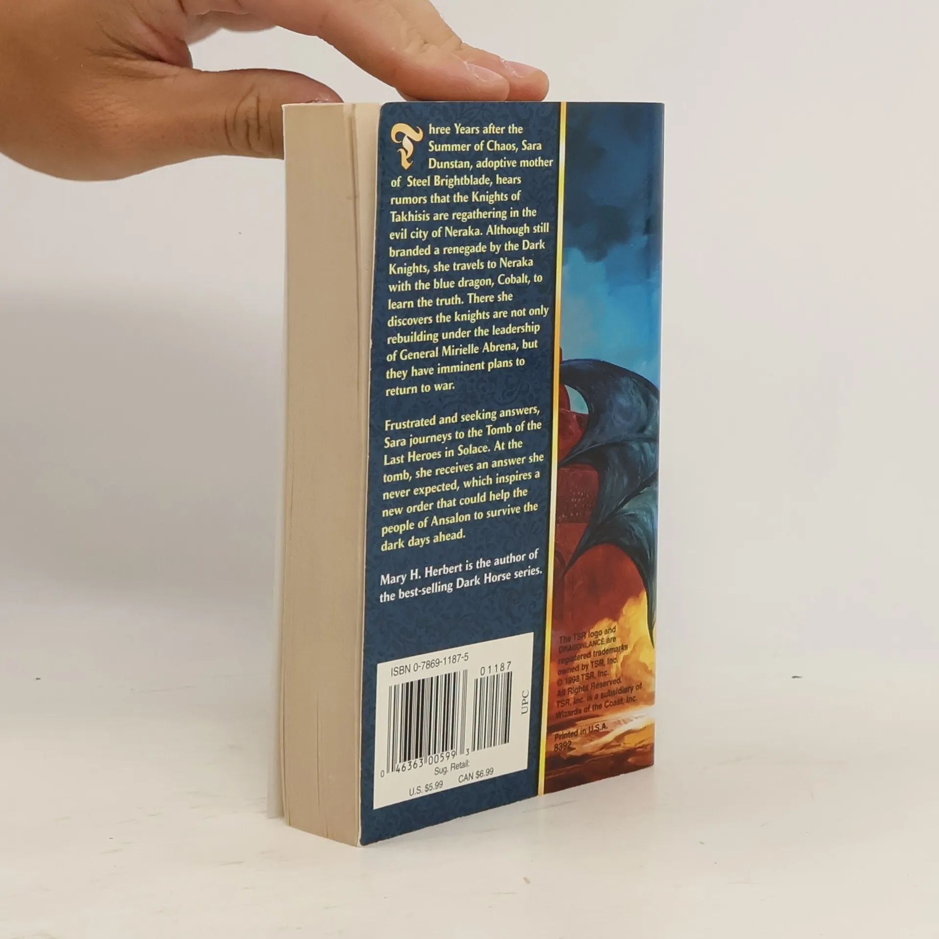 Three years after the Summer of Chaos, Sara Dunstan, adoptive mother of Steel Brightblade, hears rumors that the Knights of Takhisis are regathering in the evil city of Neraka. Although still branded a renegade by the Dark Knights, she travels to Neraka with the blue dragon, Cobalt, to learn the truth. There she discovers the knights are not only rebuilding under the leadership of General Mirielle Abrena, but they have imminent plans to return to war.Frustrated and seeking answers, Sara jounreys to the Tomb of the Last Heroes in Solace. At the tomb, she receives an answer she never expected, which inspires a new order that could help the people of Ansalon to survive the dark days ahead.Mary H. Herbert is the author of the best-selling Dark Horse series.