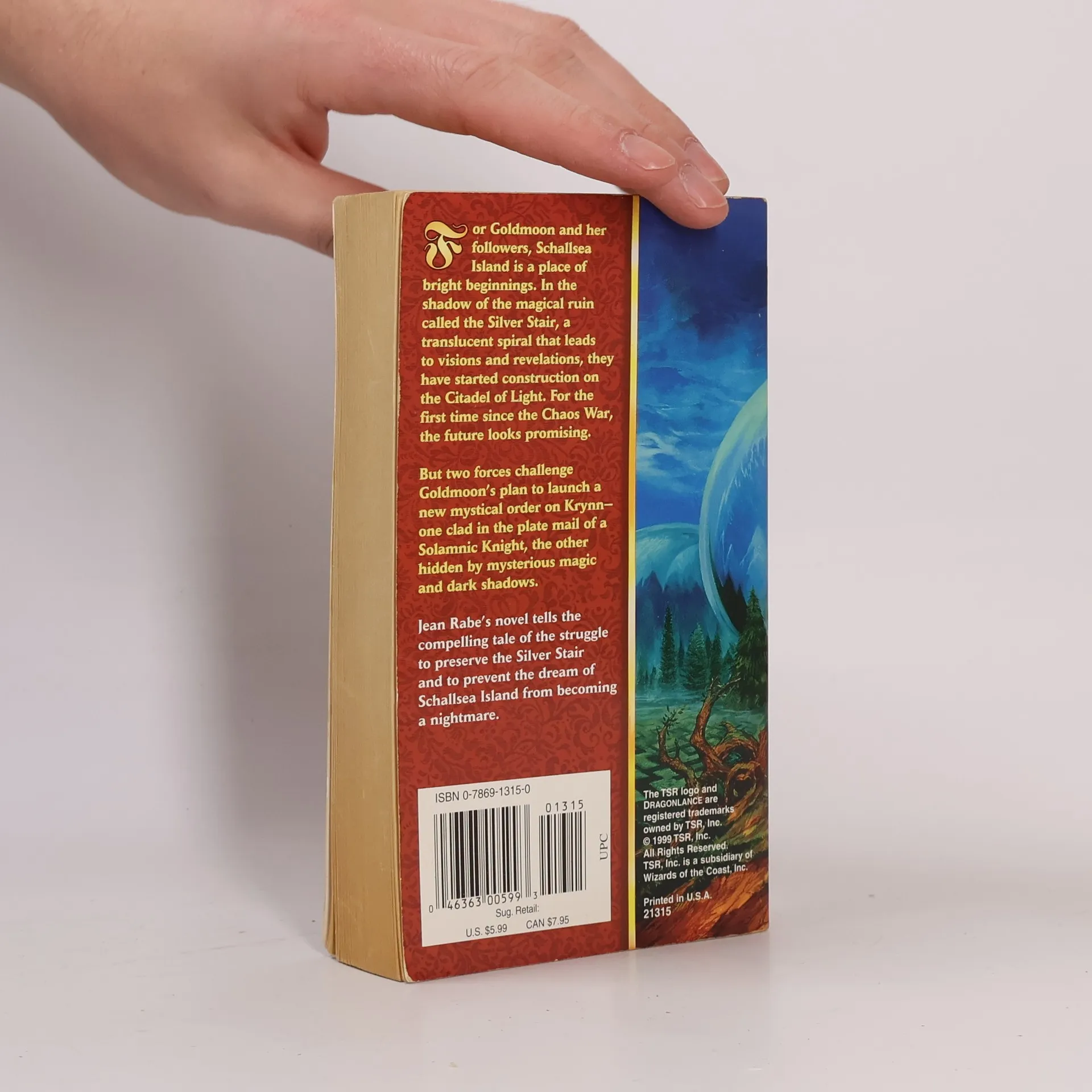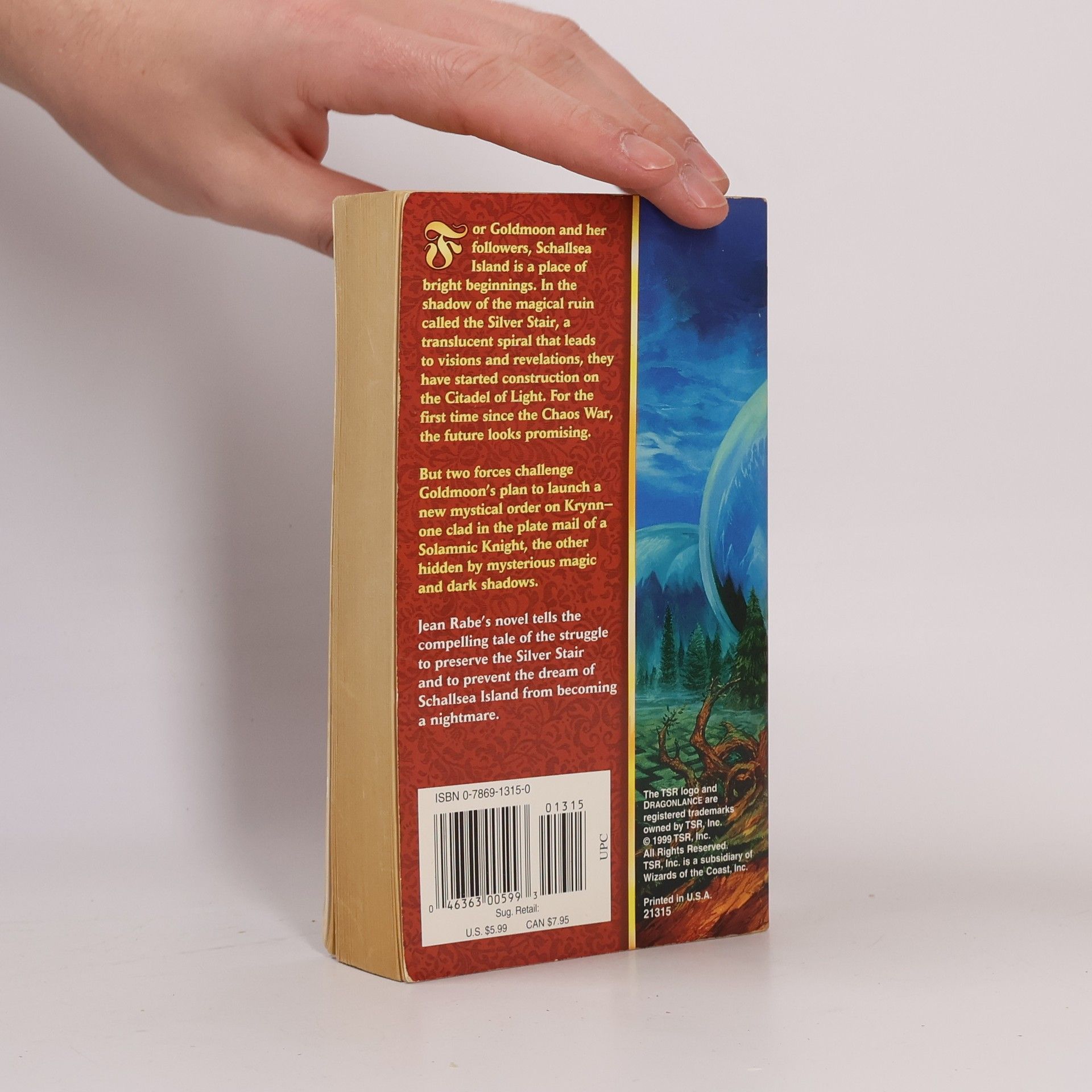 For Goldmoon and her followers, Schallsea Island is a place of bright beginnings. In the shadow of the magical ruin called the Silver Stair, a translucent spiral that leads to visions and revelations, they have started construction on the Citadel of Light. For the first time since the Chaos War, the future looks promising.But two forces challenge Goldmoon's plan to launch a new mystical order on Krynn -- one clad in the plate mail of a Solamnic Knight, the other hidden by mysterious magic and dark shadows.Jean Rabe's novel tells the compelling tale of the struggle to preserve the Silver Stair and to prevent the dream of Schallsea Island from becoming a nightmare.