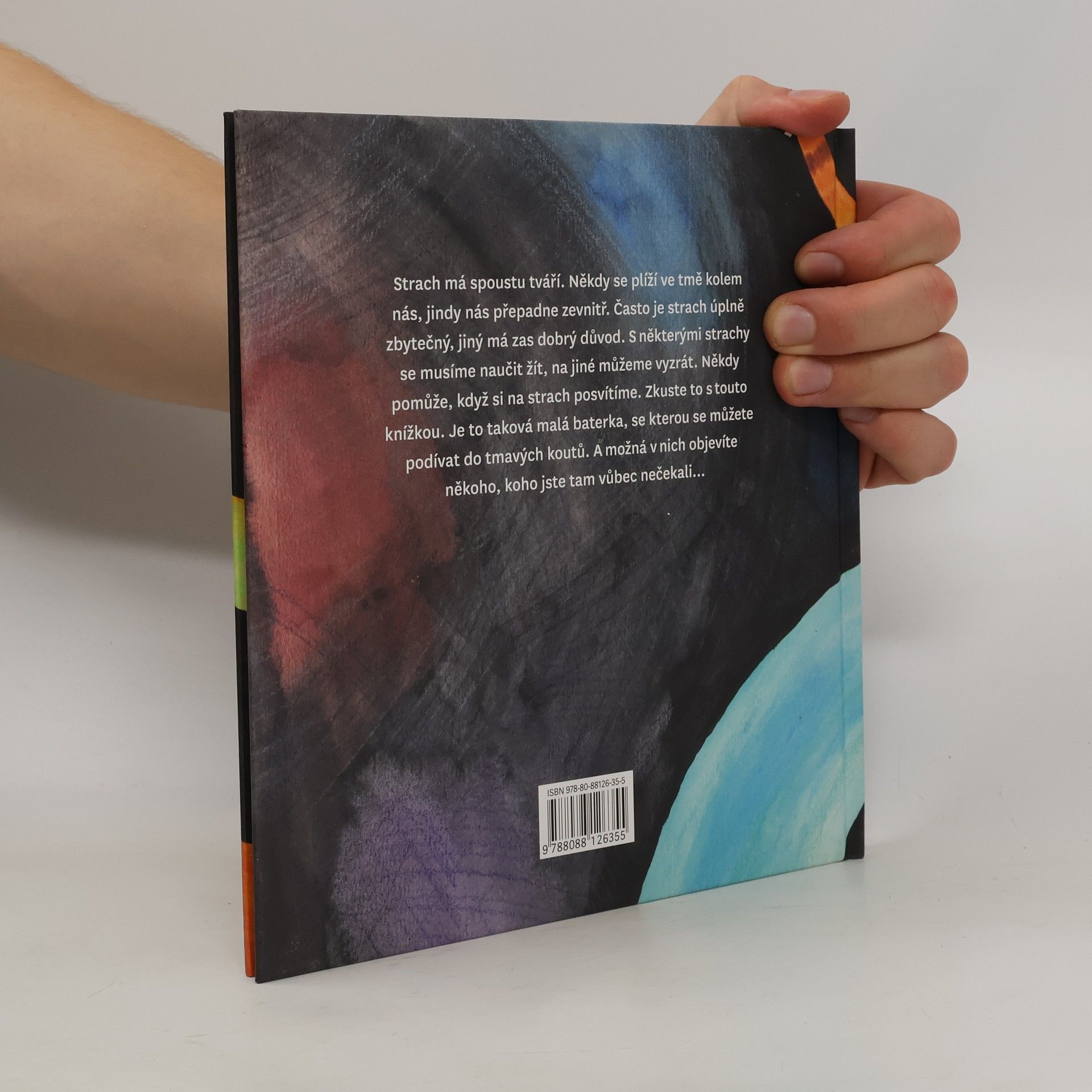 Ilustrovaná, typograficky zajímavě pojatá kniha o různých tvářích strachu a zacházení s ním. O strachu se nám většinou těžko mluví a děti na tom leckdy nejsou jinak. A pak se nám některé věci v životě také těžko konají. Kniha je určená malým dětem a těm, kdo si s nimi čtou a povídají. Kniha je koncipována jako několik etud, na začátku nabízí různé pohledy na to, jak a kde strach potkáváme, pak se do jednoho příběhu podívá a na konci se snaží zůstat otevřená našim vlastním příběhům - i po svém zavření.