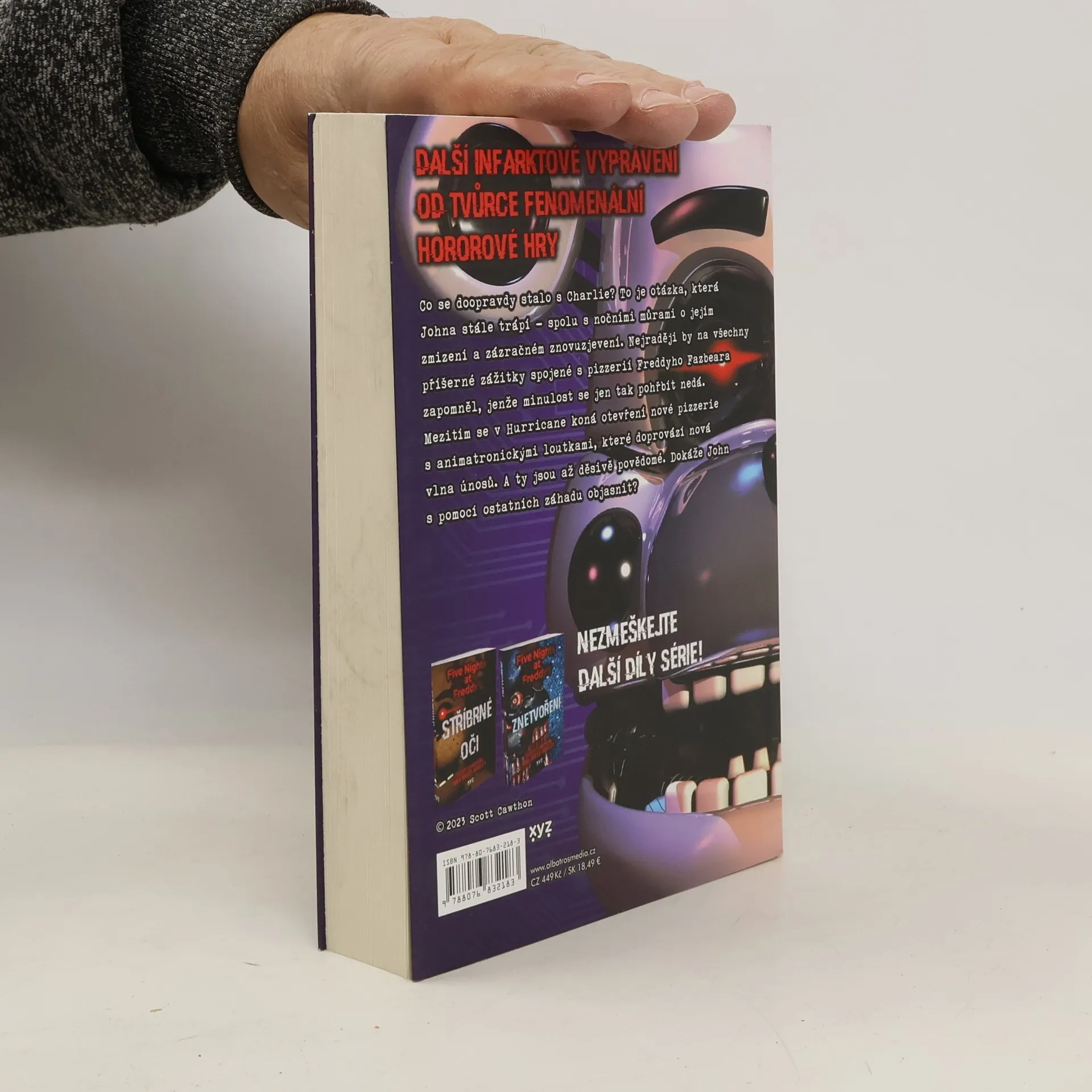 Další infarktové vyprávění od tvůrce fenomenální hororové hry Co se doopravdy stalo s Charlie? To je otázka, která Johna stále trápí – spolu s nočními můrami o jejím zmizení a zázračném znovuzjevení. Nejraději by na všechny příšerné zážitky spojené s pizzerií Freddyho Fazbeara zapomněl, jenže minulost se jen tak pohřbít nedá. Mezitím se v Hurricane koná otevření nové pizzerie s animatronickými loutkami, které doprovází nová vlna únosů. A ty jsou až děsivě povědomé. Dokáže John s pomocí ostatních záhadu objasnit?Co se doopravdy stalo s Charlie? To je otázka, která Johnovi neustále vrtá hlavou - spolu s Charliiným zdánlivým zmizením a zázračným znovu zjevením. John by nejraději zapomněl na všechny příšerné zážitky, které se okolo pizzerie Freddyho Fazbeara udály, jenomže minulost se nedá tak jednoduše pohřbít.Mezitím se v Hurricane otevírá nová pizzerie s animatronickými loutkami, což doprovází i nová vlna únosů. John se neochotně dává dohromady s Jessicou, Marlou a Carltonem a společně se pokoušejí záhadu vyřešit a najít mizející děti. Během tohoto dobrodružství se jim podaří vypátrat, co se skutečně přihodilo Charlie, a objeví i strašlivý odkaz výtvorů jejích otce.