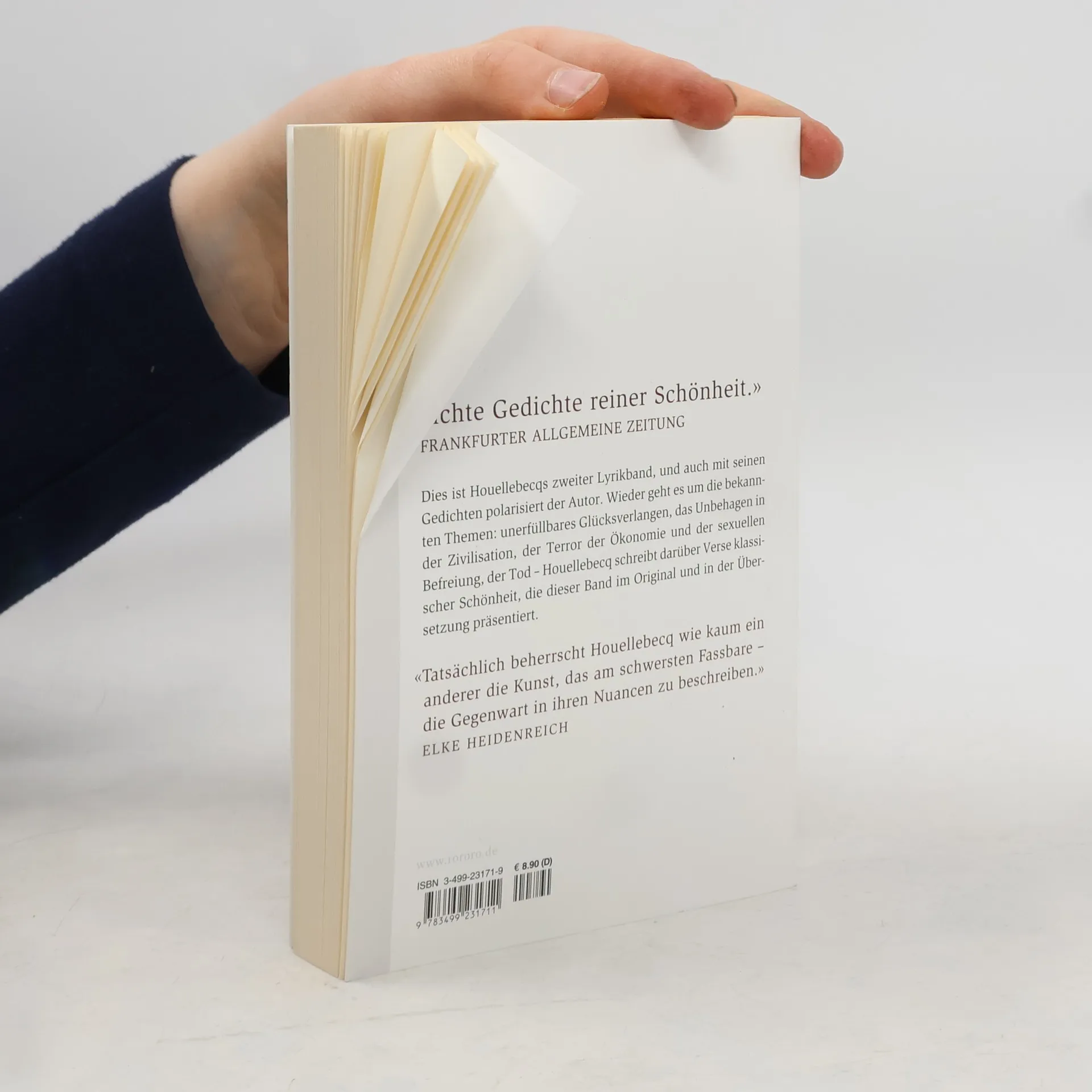 Houellebecqs zweiter Lyrikband behandelt seine bekannten Themen wie unerfülltes Glück, Zivilisationsunbehagen, ökonomischen Druck und den Tod. Die Gedichte sind in klassischer Schönheit verfasst und werden im Original sowie in Übersetzung präsentiert. Der Autor beschreibt eine gegensätzliche Entwicklung in Prosa und Poesie.