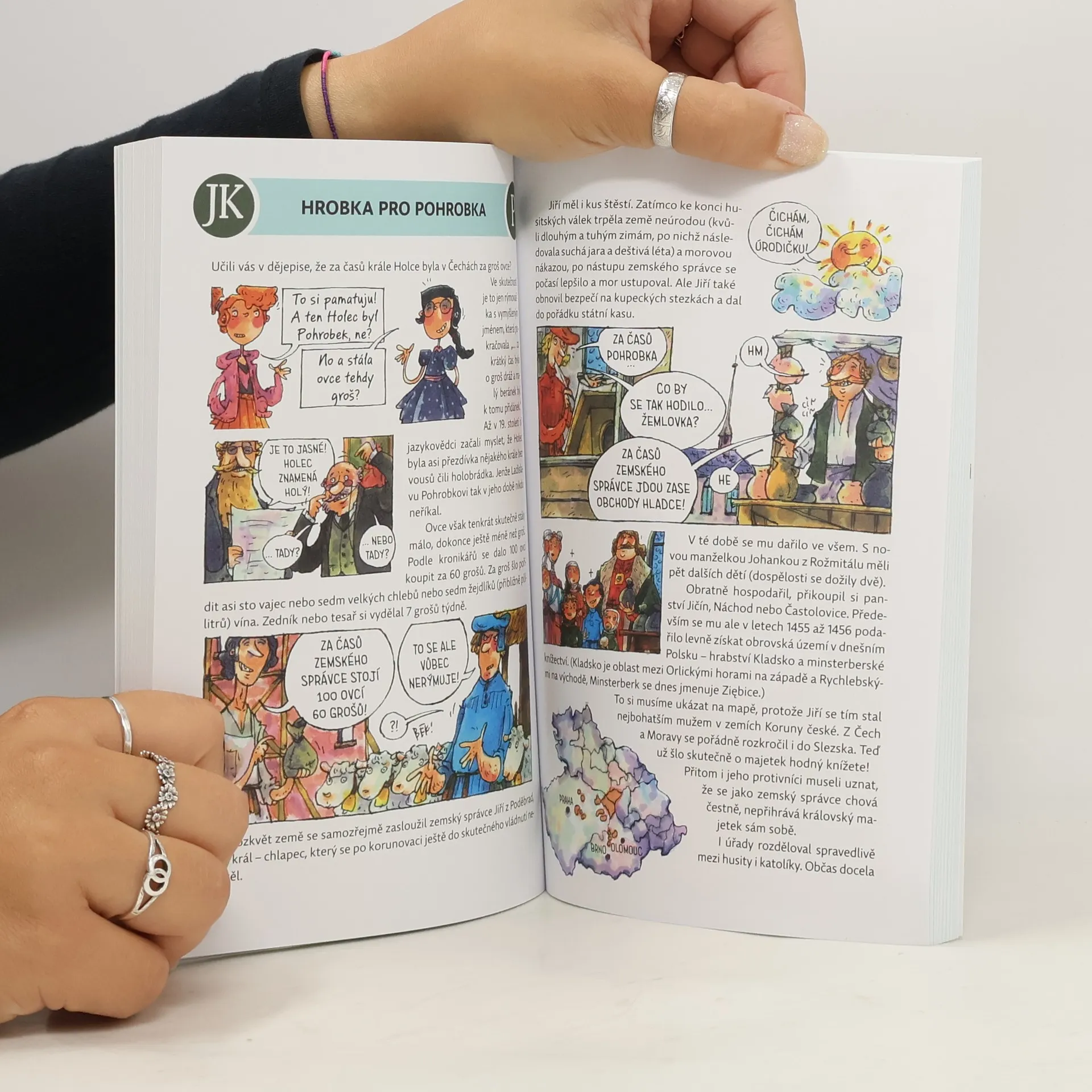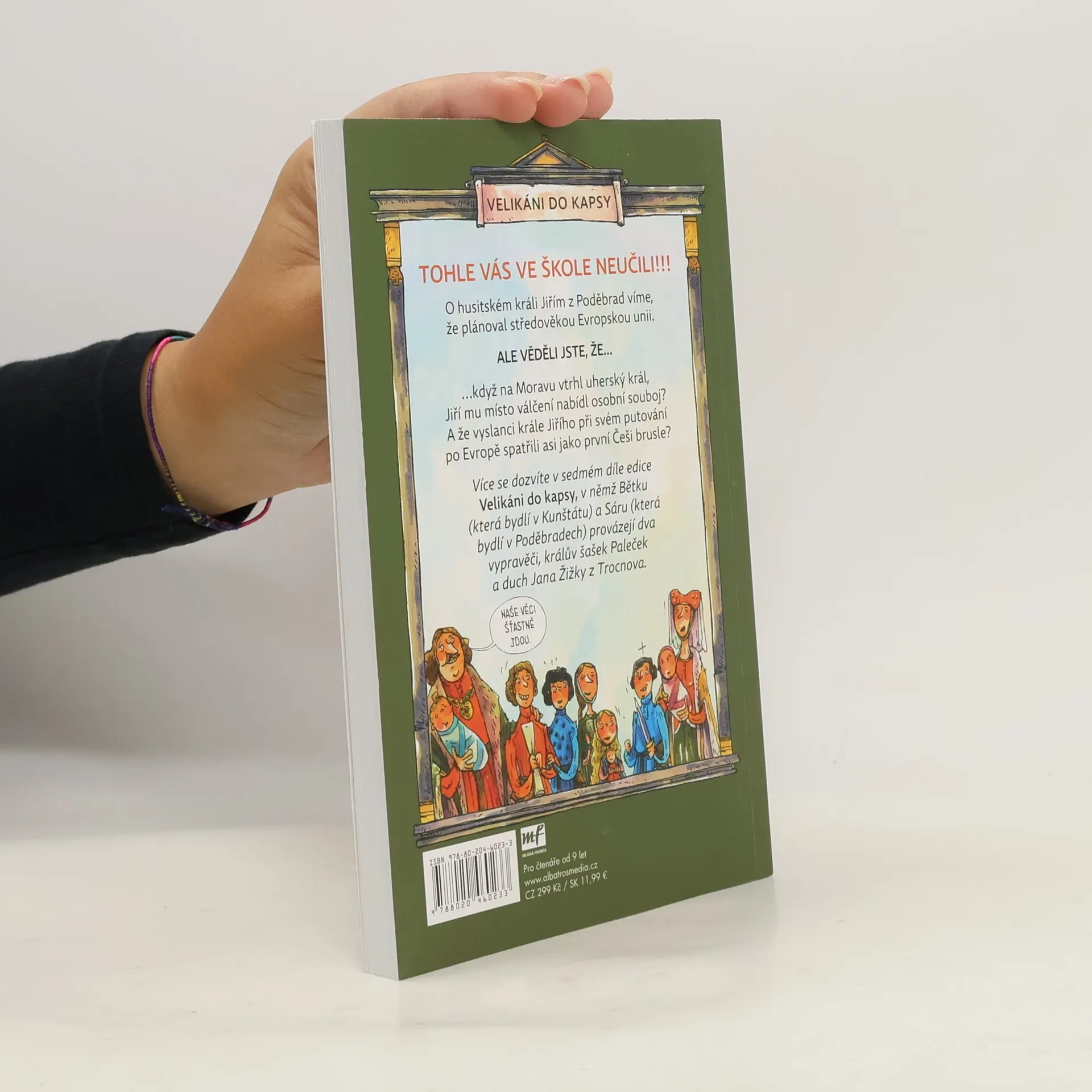 Další velikán do kapsy v sérii popisující naše hrdiny tak, jak je neznáte. Král Jiří z Poděbrad nevládl dlouho, dožil se jen 51 let – a to ještě o první třetině jeho života nevíme skoro nic. Přesto se po něm jmenují školy, ulice a náměstí. Tušili jste, že vyslanci krále Jiřího možná jako první Češi viděli v Belgii brusle a ve Španělsku býčí zápasy? Nebo že když uherský král Matyáš Korvín vtrhl na Moravu, Jiří mu místo válčení nabídl osobní souboj? Užijte si nálož zajímavostí o jednom z nejslavnějších českých panovníků!