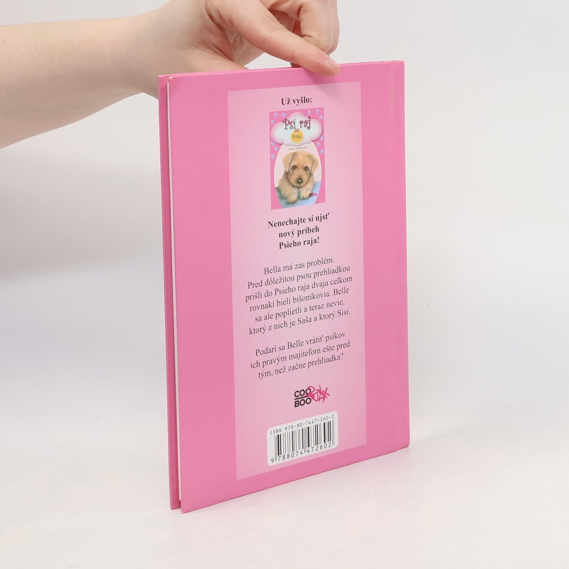Nenechajte si ujsť nový príbeh Psieho raja! Bella má opäť problém. Pred významnou psou prehliadkou prišli do Psieho raja dvaja rovnakí bieli bišonci. Belle sa však poplietli a teraz nevie, ktorý je Saša a ktorý Sisi. Podarí sa Belle vrátiť psíkov ich pravým majiteľom, skôr než prehliadka začne?