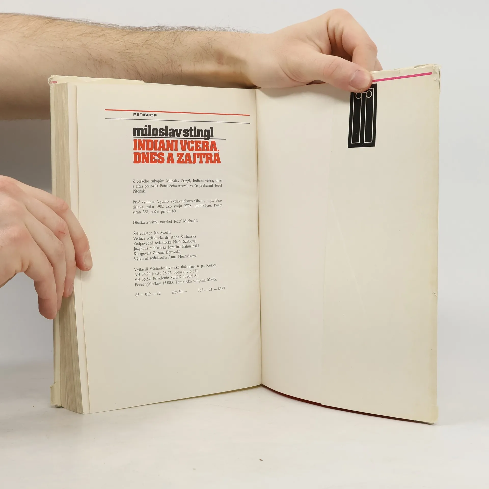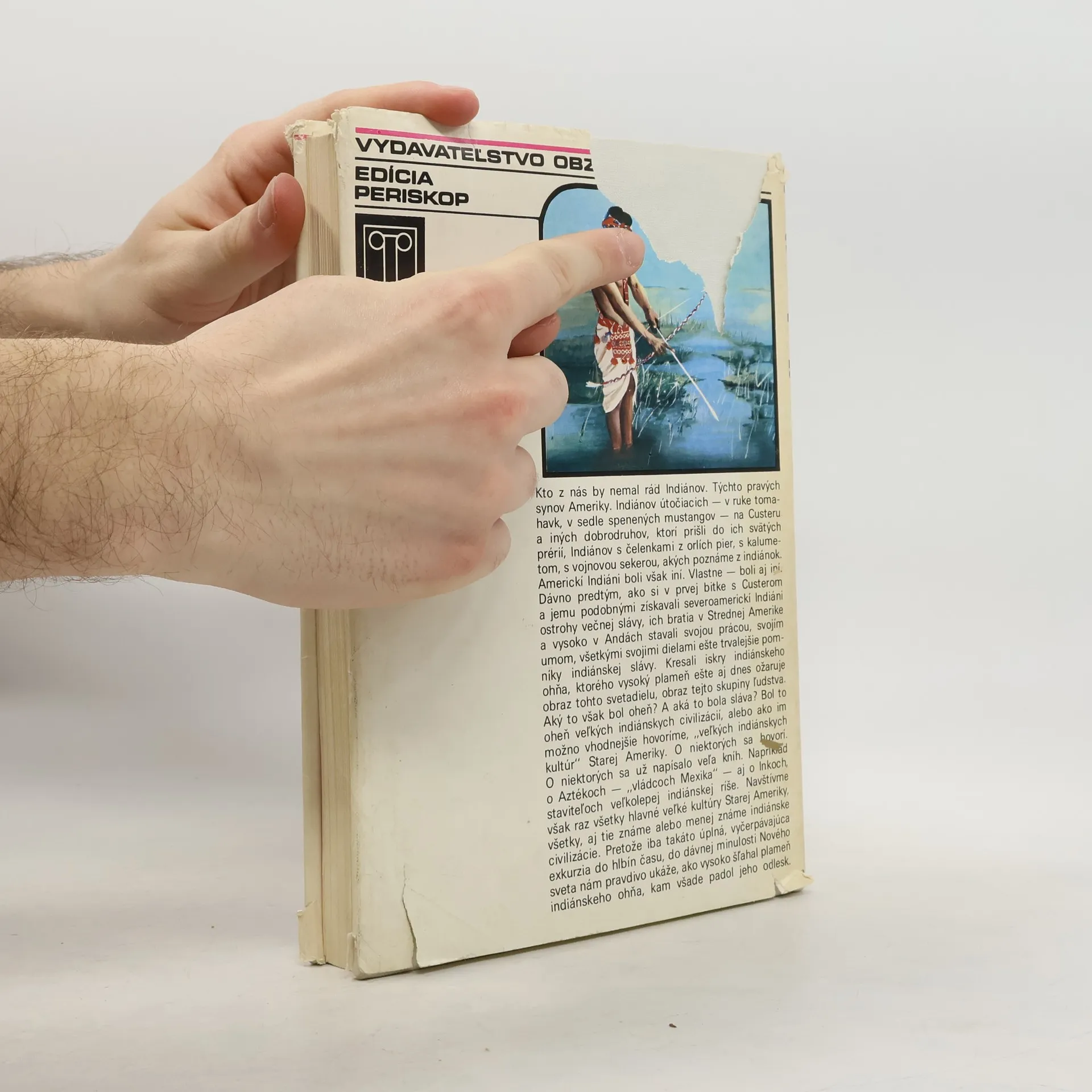 Kto z nás by nemal rád Indiánov. Týchto pravých synov Ameriky. Indiánov útočiacich-v ruke tomahavk, v sedle spenených mustangov-na Custeru a iných dobrodruhov, ktorí prišli do ich svätých prérií, Indiánov s čelenkami z orlích pier, s kalumetom, s vojnovou sekerou, akých poznáme z indiánok. Kapitoly: Predohra ku sláve, Olmékovia, Od Totonakov k Mixtékom, Aztékovia, Rovnica s mnohými neznámymi, Inkovia, Muiskovia, Dávno pred Kolumbom, Kľúč k indiánskym kultúram, Návrat bielych bohov, Ako rozvrátiť indiánske kultúry, Hľadanie Eldoráda, Mayovia, Od Ohňovej zeme po Karibské more, Indiáni prérii, Od Aljašky po Floridu, Skalp, squaw, vigvam, Smrť na Mississippi, Dobytie Ďalekého západu, Winnetouovi dedičia, Pod indiánskou vlajkou, Kolonializmus proti Indiánom-Indiáni proti kolonializmu, Revolucionári, reformisti a indigenisti, Cesta k Pátzcuaru, Pohľad na zajtrajšok. Prvé vydanie. Cena knihy v čase vydania: 50.- Kčs