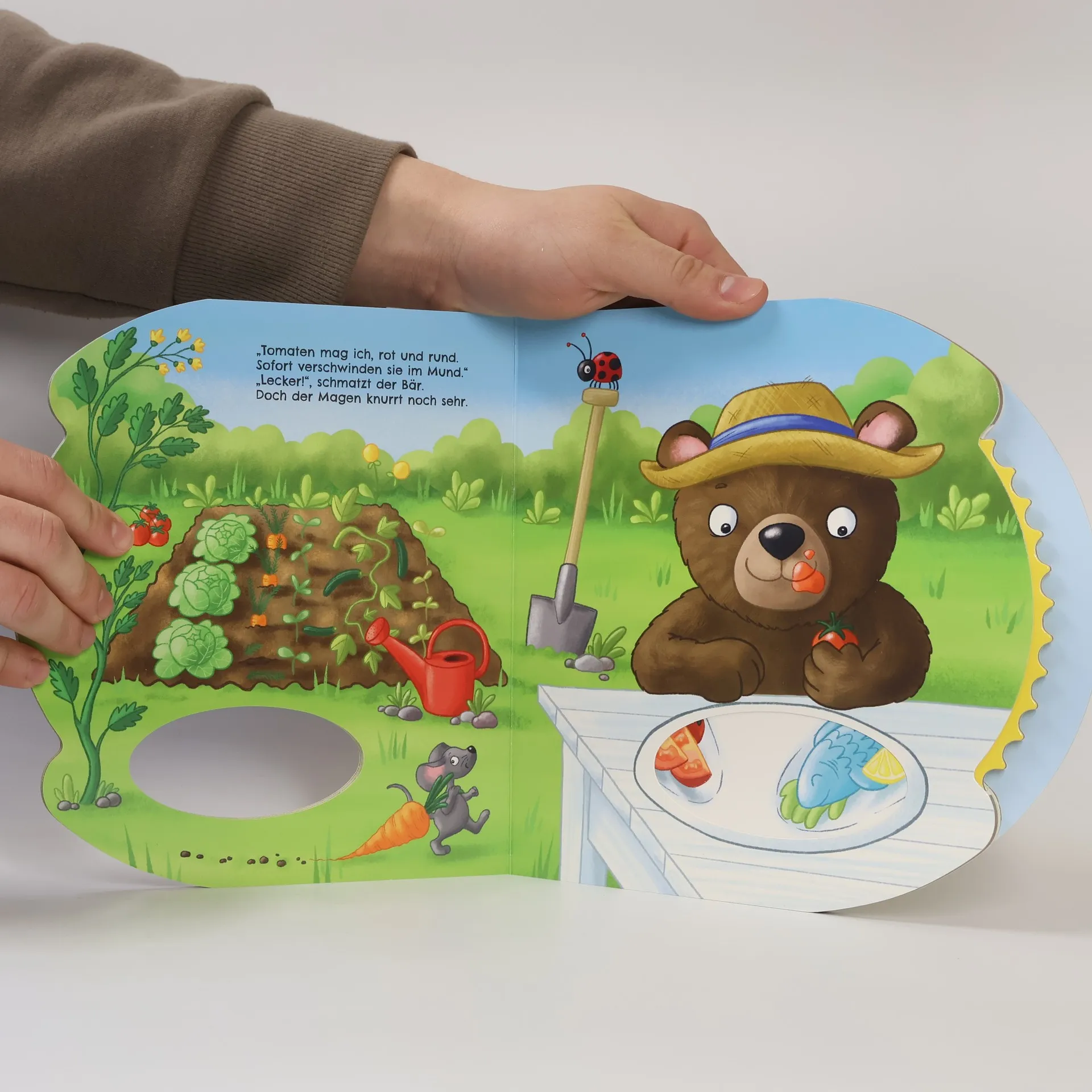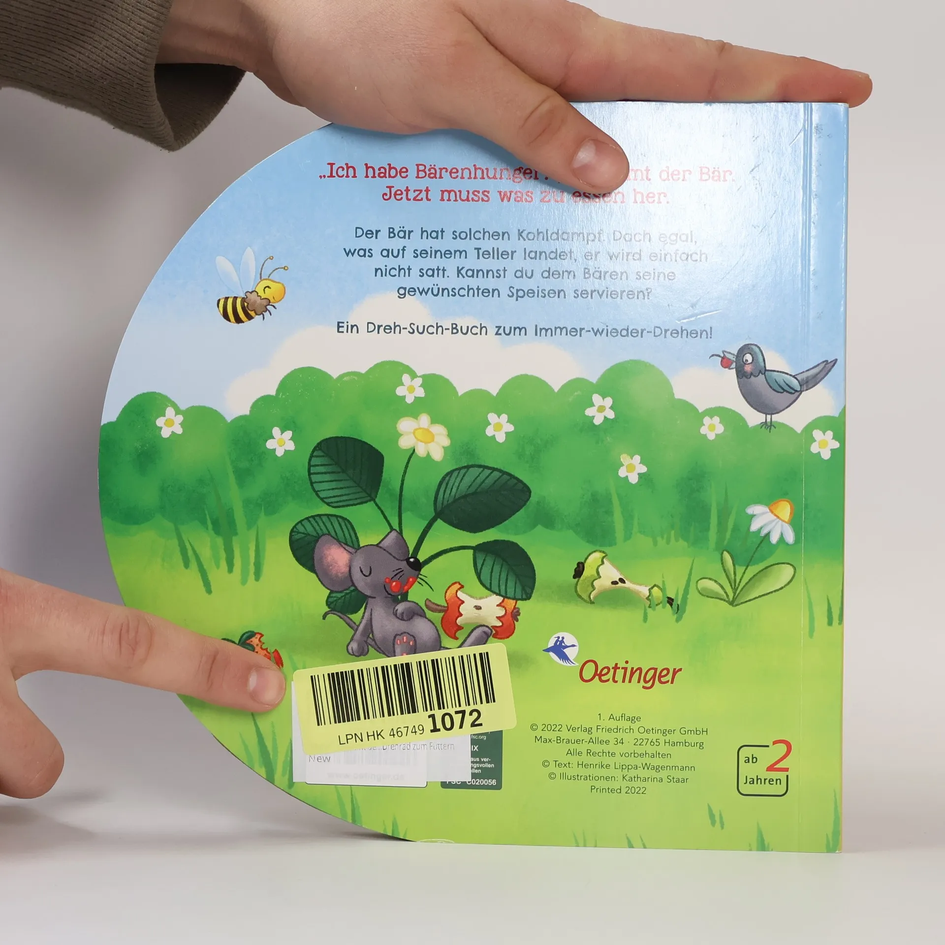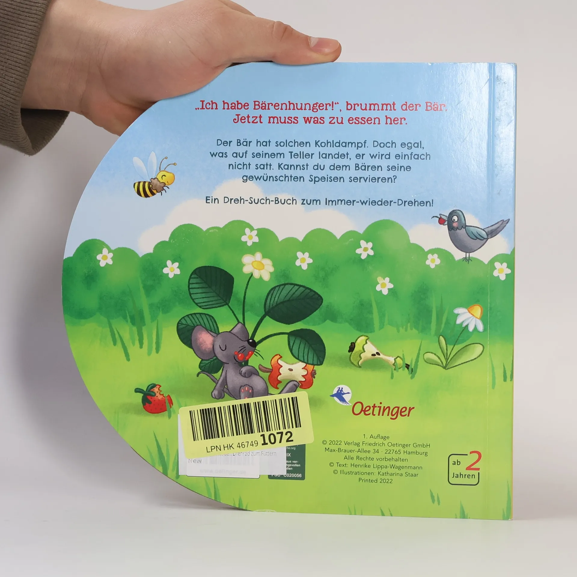 In "Mehr!, brummt der Bär" von Henrike Lippa-Wagenmann erleben Kinder ab 2 Jahren ein interaktives Abenteuer mit einem hungrigen Bären. Das Buch bietet ein Drehrad, das die Motorik und Kreativität fördert, und begeistert mit liebevollen Reimen sowie wunderschönen Illustrationen. Ideal für Vorlese- und Spielzeiten.