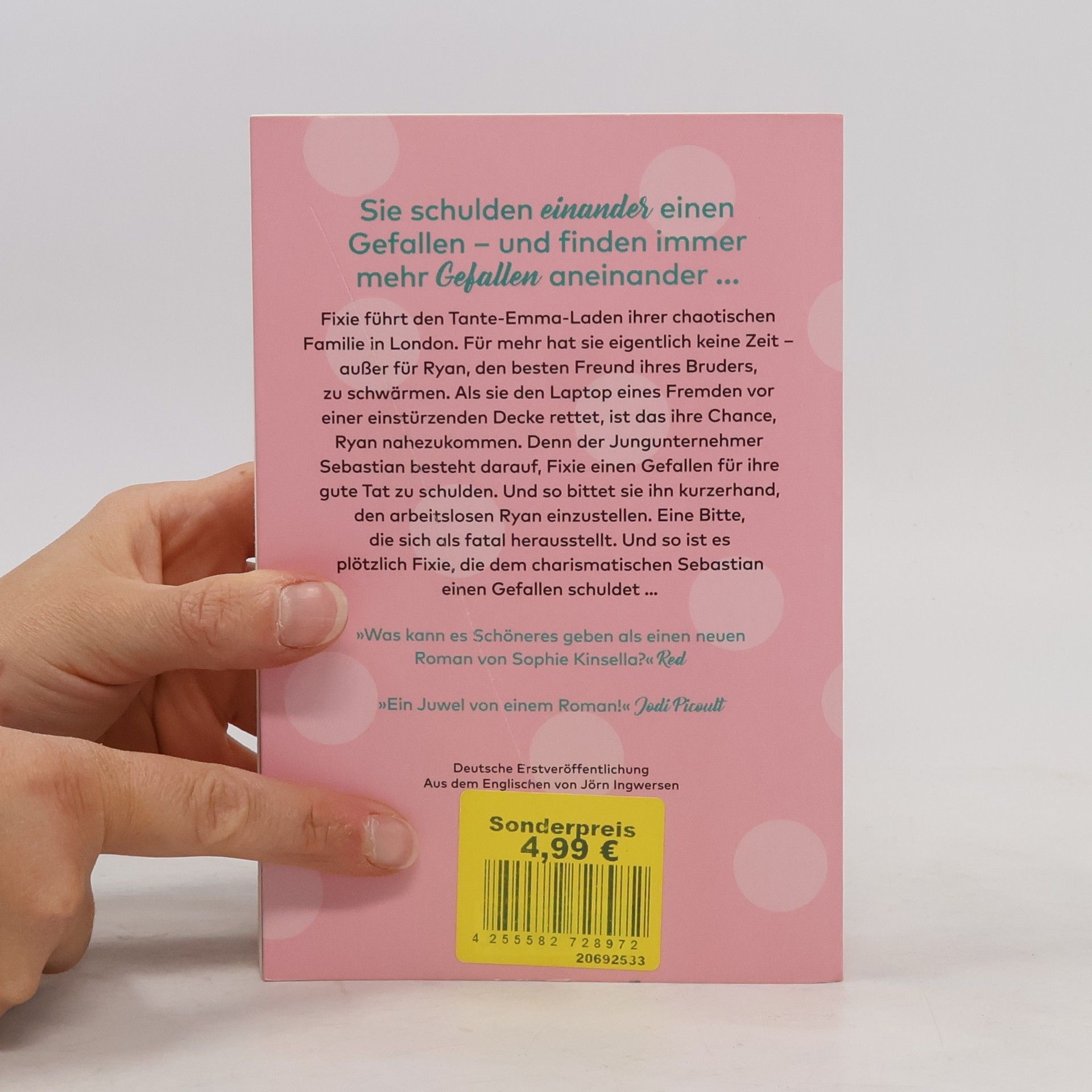 Fixie führt den Tante-Emma-Laden ihrer chaotischen Familie in London. Für mehr hat sie eigentlich keine Zeit – außer für Ryan, den besten Freund ihres Bruders, zu schwärmen. Als sie den Laptop eines Fremden vor einer einstürzenden Decke rettet, ist das ihre Chance, Ryan nahezukommen. Denn der Jungunternehmer Sebastian besteht darauf, Fixie einen Gefallen für ihre gute Tat zu schulden. Und so bittet sie ihn kurzerhand, den arbeitslosen Ryan einzustellen. Die Bitte stellt sich jedoch als fatal heraus, denn in Sebs Unternehmen zeigt Ryan sein wahres Gesicht. Und so ist es plötzlich Fixie, die dem charismatischen Sebastian einen Gefallen schuldet ...