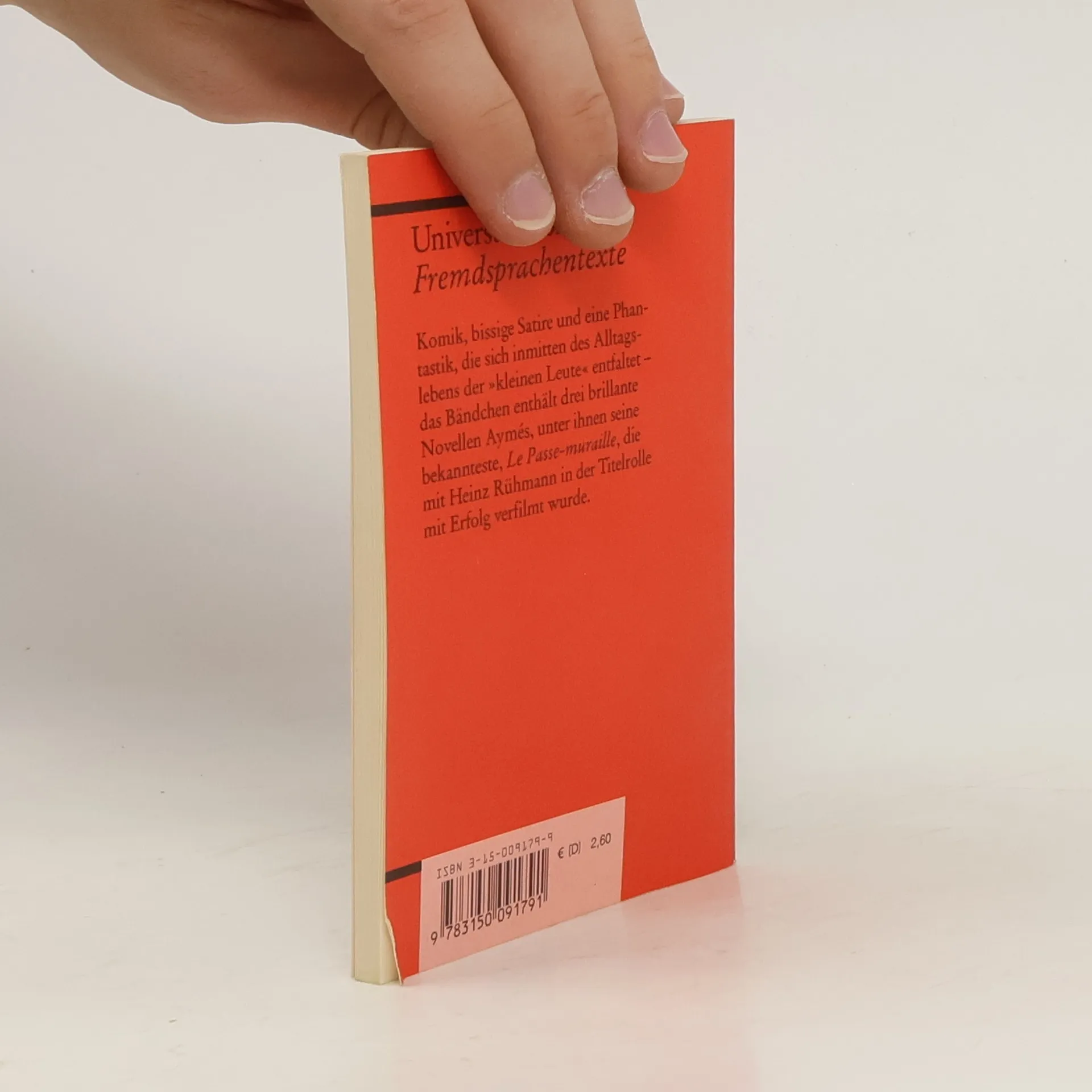 Drei brillante Novellen Aymés zeigen Komik, bissige Satire und eine Phantastik, die sich inmitten des Alltagslebens der „kleinen Leute“ entfaltet: Neben Le Proverbe und Les Clochards seine bekannteste: Le Passe-muraille, die mit Heinz Rühmann in der Titelrolle verfilmt wurde. Ungekürzte und unbearbeitete Textausgabe in der Originalsprache, mit Übersetzungen schwieriger Wörter am Fuß jeder Seite, Nachwort und Literaturhinweisen.