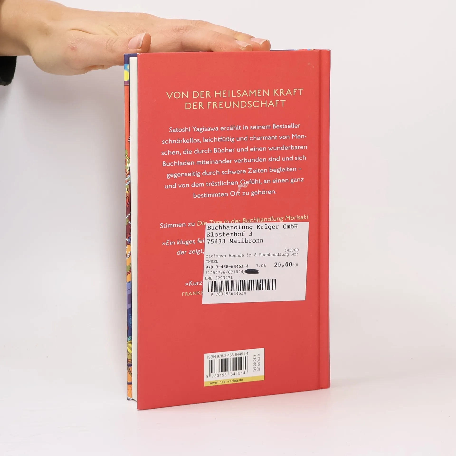 Satoshi Yagisawa erzählt von Menschen, die durch einen Buchladen verbunden sind. Takako, die in "Die Tage in der Buchhandlung Morisaki" ihren Liebeskummer überwunden hat, unterstützt ihren Onkel Satoru, dessen Frau Momoko schwer erkrankt ist. Gemeinsam finden sie neuen Mut und halten den Buchladen am Leben.
