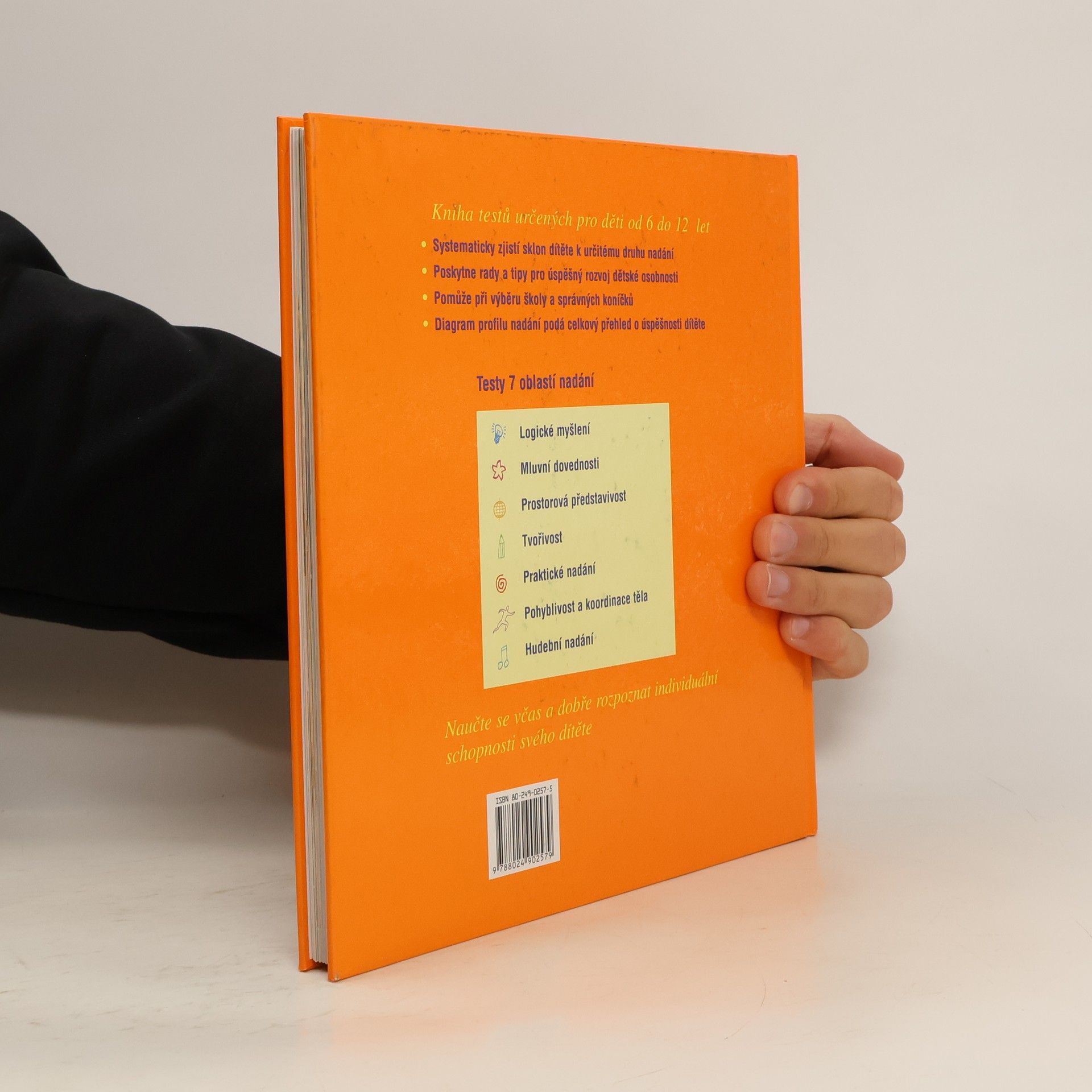 Objevte silné stránky svého dítěte! Chcete včas rozpoznat nadání svého dítěte? Podpořit jeho individuální talent? - Pomocí knihy zjistíte sklony dítěte, získáte tipy pro úspěšný rozvoj dětské osobnosti i rady při výběru školy a správných koníčků. Na jdete zde testy 7 oblastí nadání: logické myšlení, mluvní dovednosti, prostorová představivost, tvořivost, praktické nadání, pohyblivost a koordinace těla a hudební nadání. Přeložila Jitka Kaulfussová.