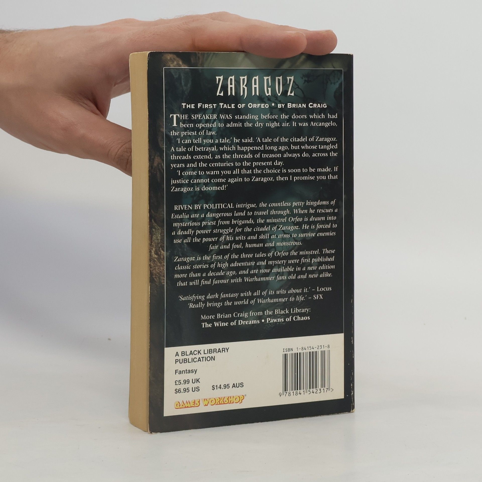 The castle of Zaragoz iss a citadel where once justice reigned. But to the great misfortune of the land, an army comes to seize the castle and depose the duke--and take away the hope that justice would return. Orfeo, a wandering player, is plunged deep into a web of intrigue within the walls of Zaragoz where he struggles against the dark powers that threaten the Warhammer world.