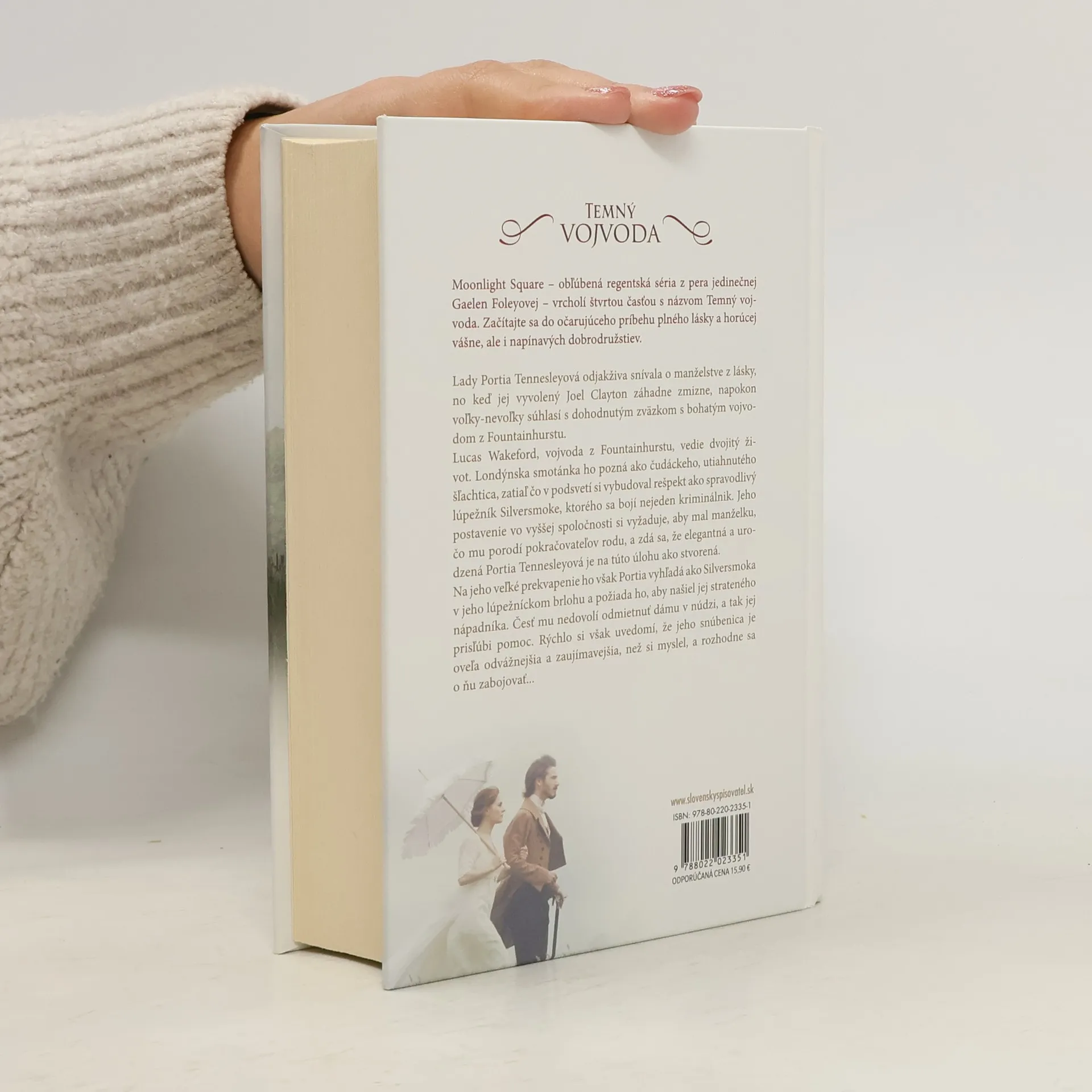 Moonlight Square – obľúbená regentská séria z pera jedinečnej Gaelen Foleyovej – vrcholí štvrtou časťou s názvom Temný vojvoda. Začítajte sa do očarujúceho príbehu plného lásky a horúcej vášne, ale i napínavých dobrodružstiev. Lady Portia Tennesleyová odjakživa snívala o manželstve z lásky, no keď jej vyvolený Joel Clayton záhadne zmizne, napokon voľky-nevoľky súhlasí s dohodnutým zväzkom s bohatým vojvodom z Fountainhurstu. Lucas Wakeford, vojvoda z Fountainhurstu, vedie dvojitý život. Londýnska smotánka ho pozná ako čudáckeho, utiahnutého šľachtica, zatiaľ čo v podsvetí si vybudoval rešpekt ako spravodlivý lúpežník Silversmoke, ktorého sa bojí nejeden kriminálnik. Jeho postavenie vo vyššej spoločnosti si vyžaduje, aby mal manželku, čo mu porodí pokračovateľov rodu, a zdá sa, že elegantná a urodzená Portia Tennesleyová je na túto úlohu ako stvorená. Na jeho veľké prekvapenie ho však Portia vyhľadá ako Silversmoka v jeho lúpežníckom brlohu a požiada ho, aby našiel jej strateného nápadníka. Česť mu nedovolí odmietnuť dámu v núdzi, a tak jej prisľúbi pomoc. Rýchlo si však uvedomí, že jeho snúbenica je oveľa odvážnejšia a zaujímavejšia, než si myslel, a rozhodne sa o ňu zabojovať…