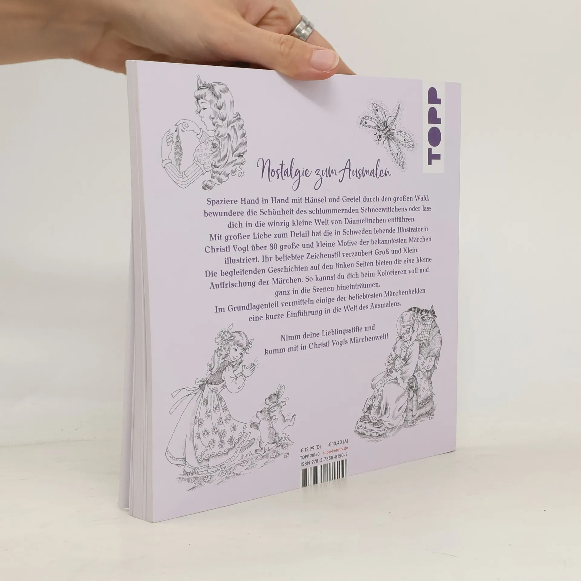 Entdecken Sie die fantasievolle Ausmalreise der Künstlerin Christl Vogl, die über 80 liebevoll illustrierte Märchenmotive bietet. Begleittexte und Tipps zur Farbgestaltung laden zum Träumen und Ausmalen ein. Das Buch bleibt durch seine besondere Bindung offen und besteht aus festem Papier. Ein ideales Geschenk für Groß und Klein!