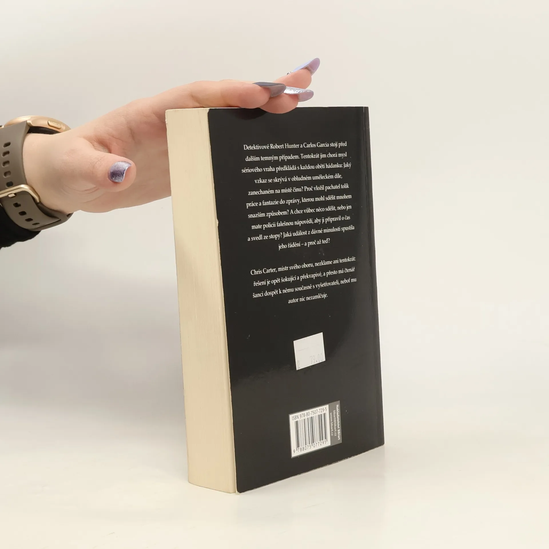 Detektivové Robert Hunter a Carlos Garcia stojí před dalším temným případem. Tentokrát jim chorá mysl sériového vraha předkládá s každou obětí hádanku: Jaký vzkaz se skrývá v obludném uměleckém díle, zanechaném na místě činu? Proč vložil pachatel tolik práce a fantazie do zprávy, kterou mohl sdělit mnohem snazším způsobem? A chce vůbec něco sdělit, nebo jen mate policii falešnou nápovědí, aby ji připravil o čas a svedl ze stopy? Jaká událost z dávné minulosti spustila jeho řádění – a proč až teď? Chris Carter, mistr svého oboru, nezklame ani tentokrát: řešení je opět šokující a překvapivé, a přesto má čtenář šanci dospět k němu současně s vyšetřovateli, neboť mu autor nic nezamlčuje.