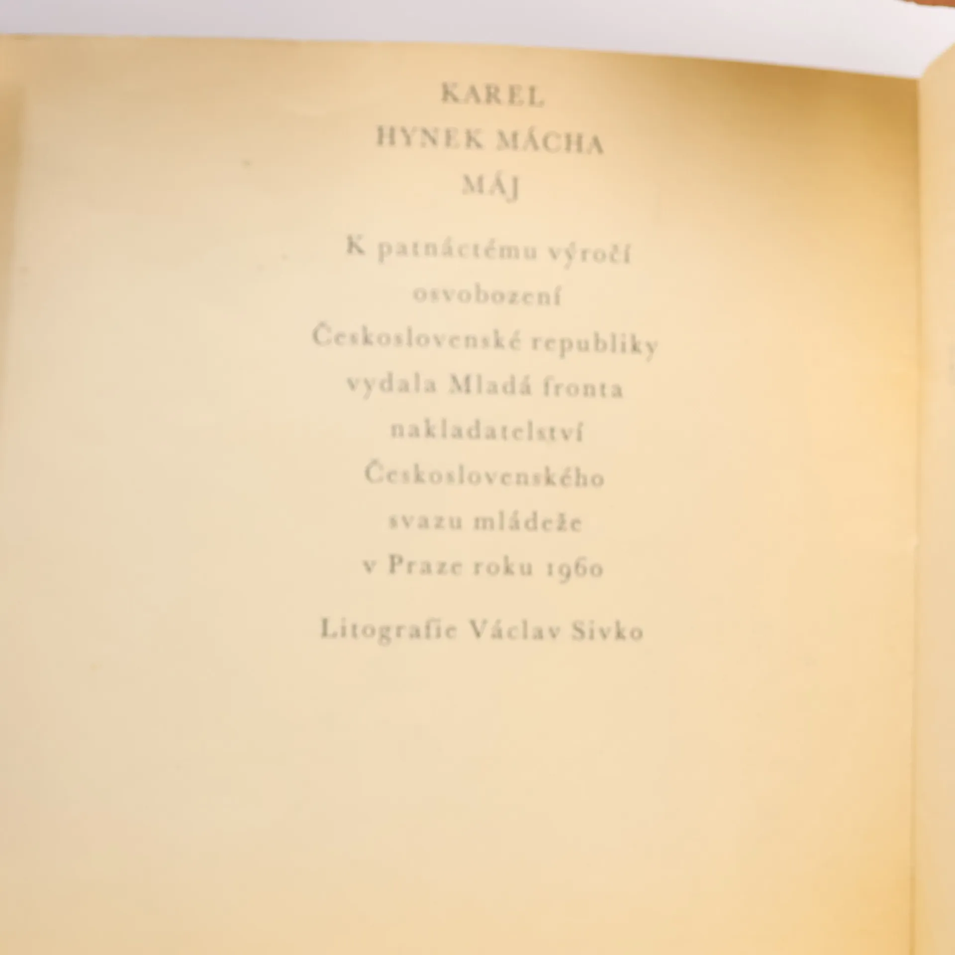 Vydání Máchova Máje k patnáctému výročí osvobození Československé republiky s použitím kreseb z původních litografií Václava Sivka.