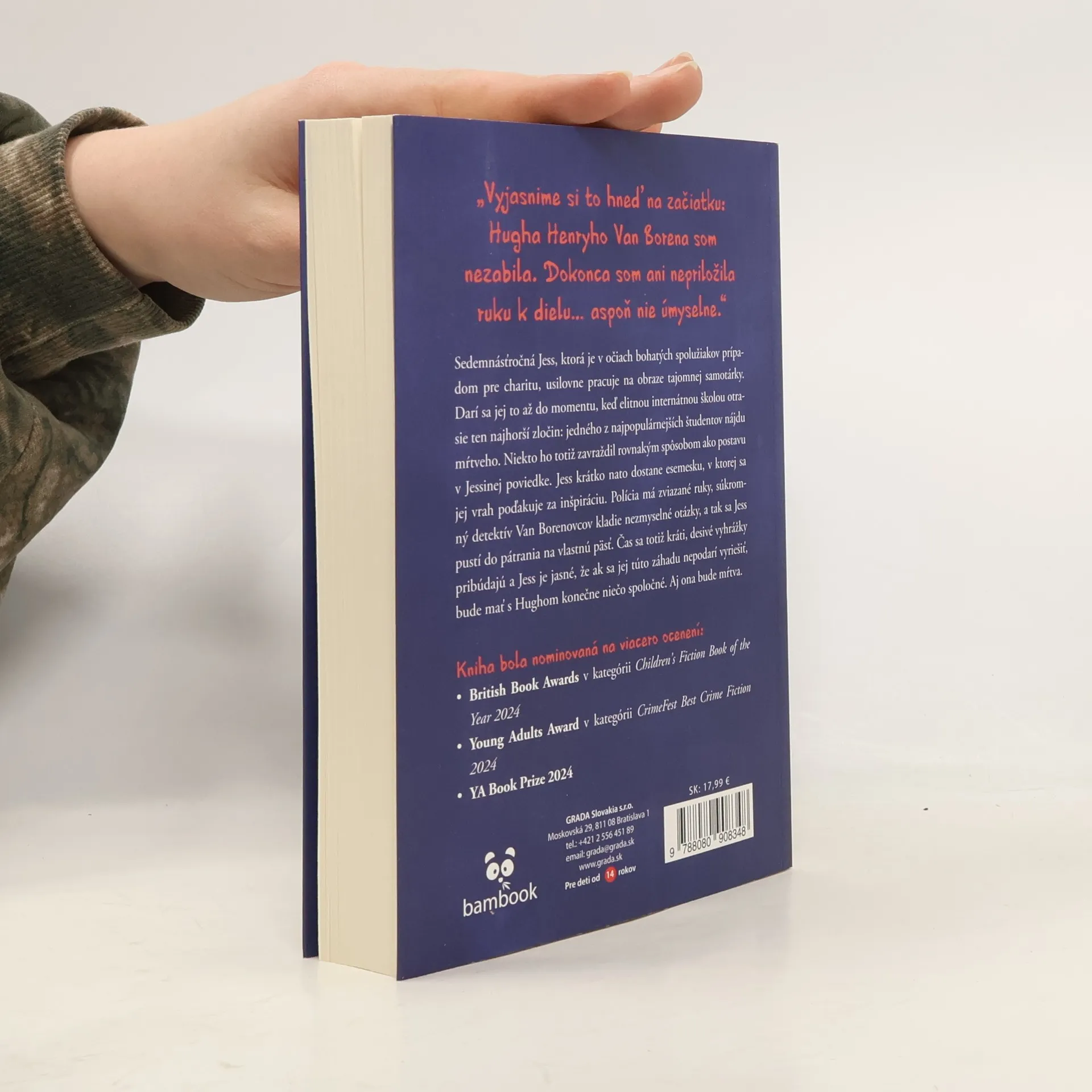 „Vyjasnime si to hneď na začiatku: Hugha Henryho Van Borena som nezabila. Dokonca som ani nepriložila ruku k dielu… aspoň nie úmyselne.“ Sedemnásťročná Jess, ktorá je v očiach bohatých spolužiakov prípadom pre charitu, usilovne pracuje na obraze tajomnej samotárky. Darí sa jej to až do momentu, keď elitnou internátnou školou otrasie ten najhorší zločin: jedného z najpopulárnejších študentov nájdu mŕtveho. Niekto ho totiž zavraždil rovnakým spôsobom ako postavu v Jessinej poviedke. Jess krátko nato dostane esemesku, v ktorej sa jej vrah poďakuje za inšpiráciu. Polícia má zviazané ruky, súkromný detektív Van Borenovcov kladie nezmyselné otázky, a tak sa Jess pustí do pátrania na vlastnú päsť. Čas sa totiž kráti, desivé vyhrážky pribúdajú a Jess je jasné, že ak sa jej túto záhadu nepodarí vyriešiť, bude mať s Hughom Henrym konečne niečo spoločné. Aj ona bude mŕtva.