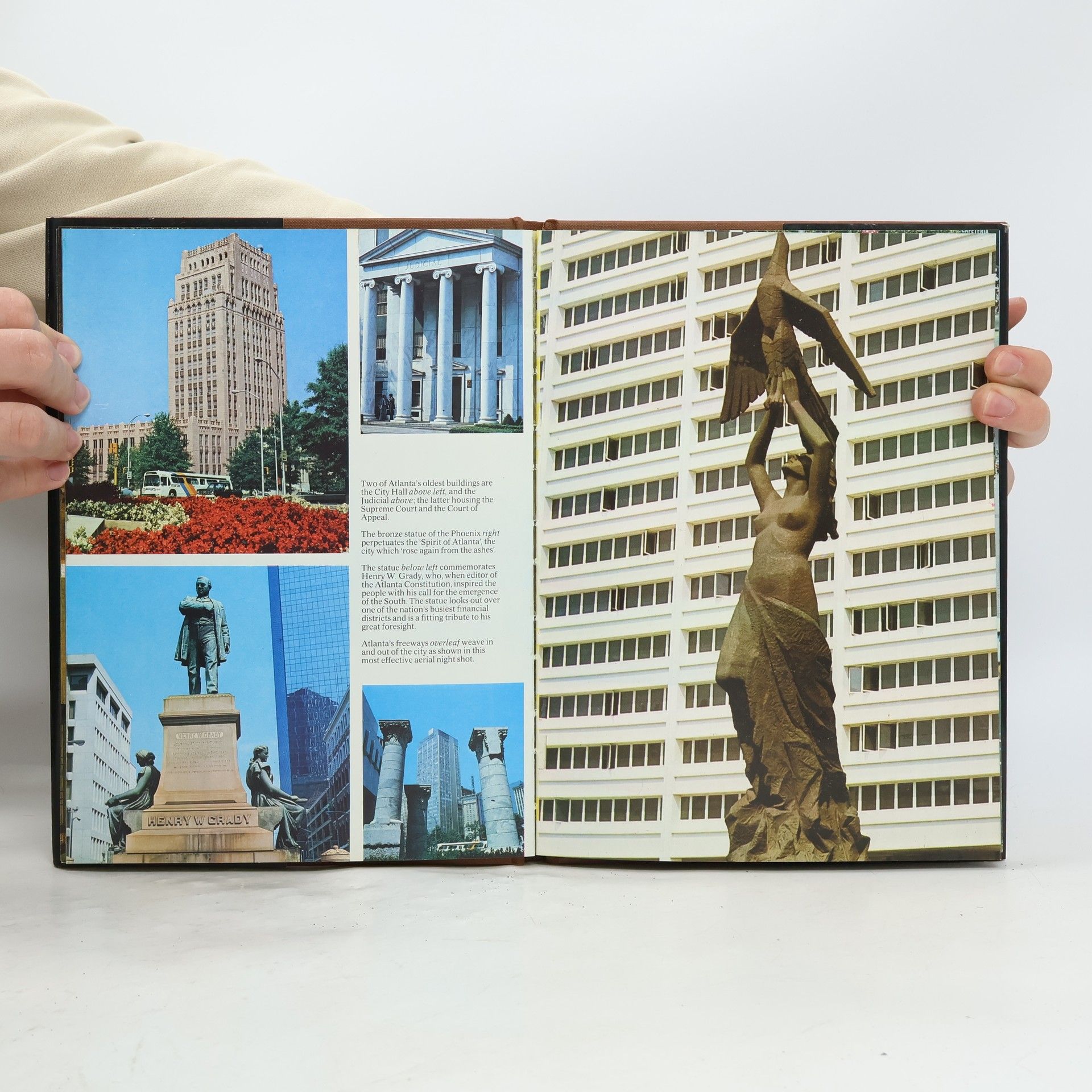 Captioned color photographs portray the various scenes, places of interest, and people of Atlanta.