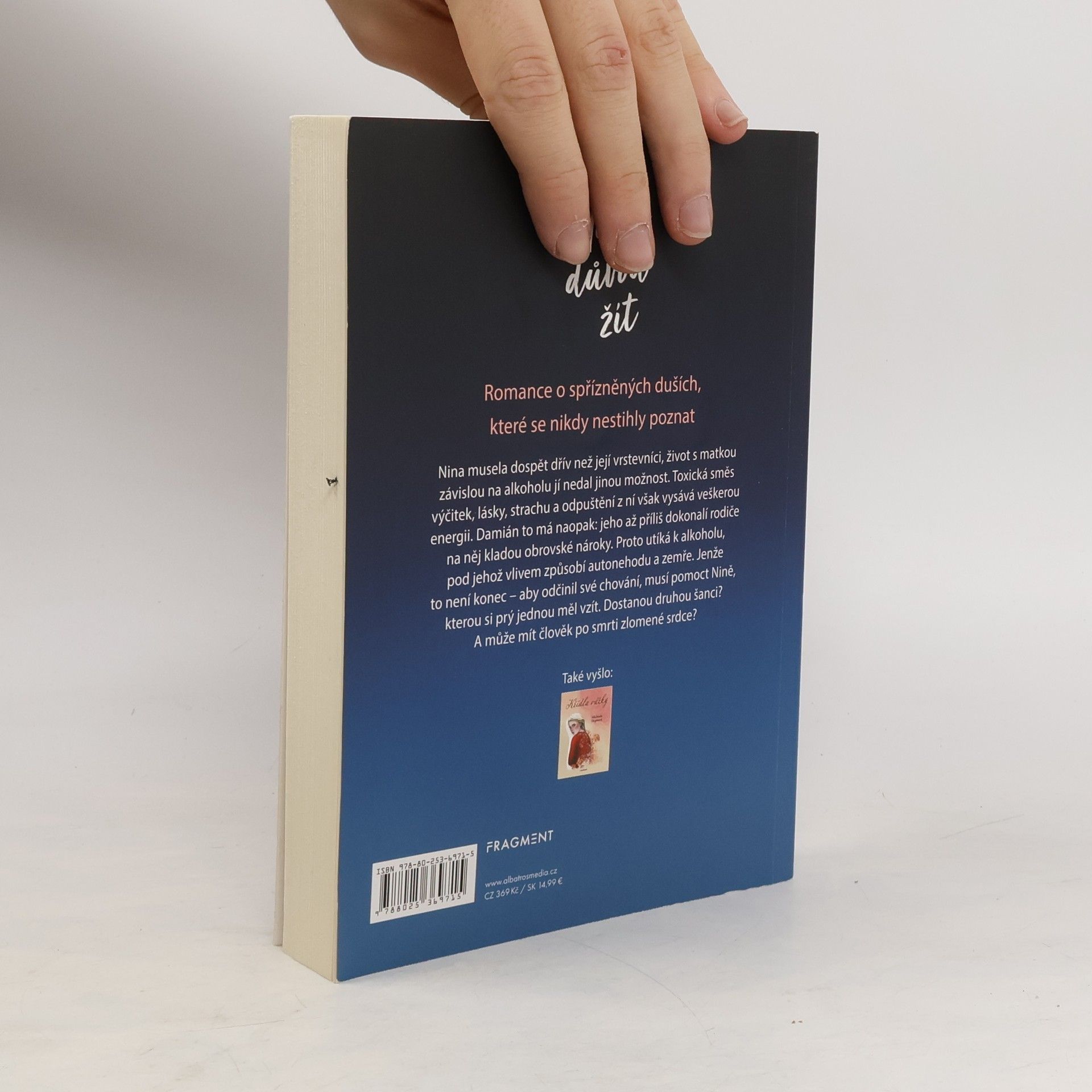 Milostná romance o spřízněných duších, které se nikdy nestihly poznat. Nina musela dospět dřív než její vrstevníci, život s matkou závislou na alkoholu jí nedal jinou možnost. Toxická směs výčitek, lásky, strachu a odpuštění z ní však vysává veškerou energii. Damián to má naopak: jeho až příliš dokonalí rodiče na něj kladou obrovské nároky. Proto utíká k alkoholu, pod jehož vlivem způsobí autonehodu a zemře. Jenže to není konec - aby odčinil své chování, musí pomoct Nině, kterou si prý jednou měl vzít. Dostanou druhou šanci? A může mít člověk po smrti zlomené srdce? Nakladatelská anotace. Kráceno.