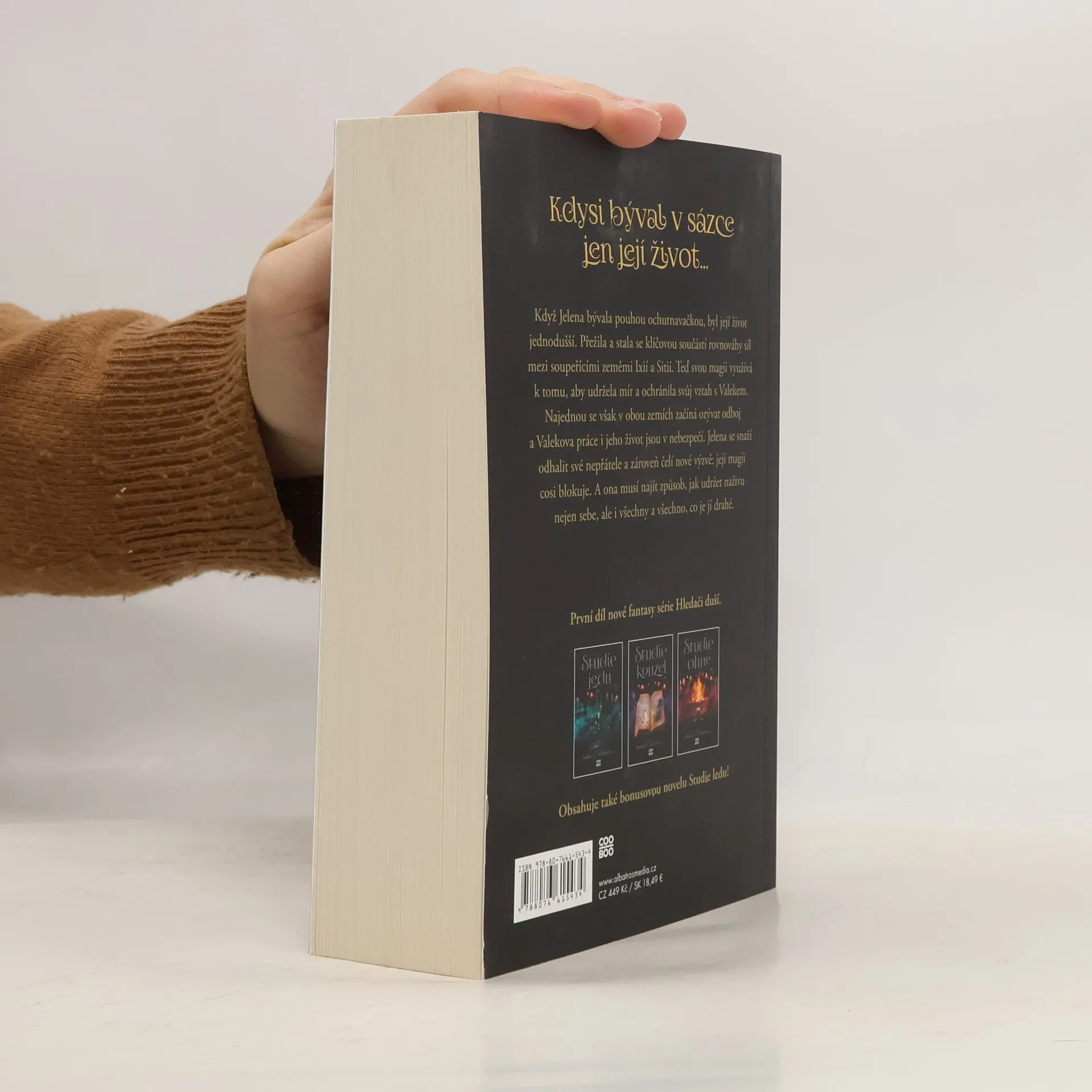 Kdysi býval v sázce jen její život. První díl nové fantasy série Hledači Duší. Když Jelena bývala pouhou ochutnavačkou, byl její život jednodušší. Přežila a stala se klíčovou součástí rovnováhy sil mezi soupeřícími zeměmi Ixií a Sitií. Teď svou magii využívá k tomu, aby udržela mír a ochránila svůj vztah s Valekem. Najednou se však v obou zemích začíná ozývat odboj a Valekova práce i jeho život jsou v nebezpečí. Jelena se snaží odhalit své nepřátele a zároveň čelí nové výzvě: její magii cosi blokuje. A ona musí najít způsob, jak udržet naživu nejen sebe, ale i všechny a všechno, co je jí drahé.