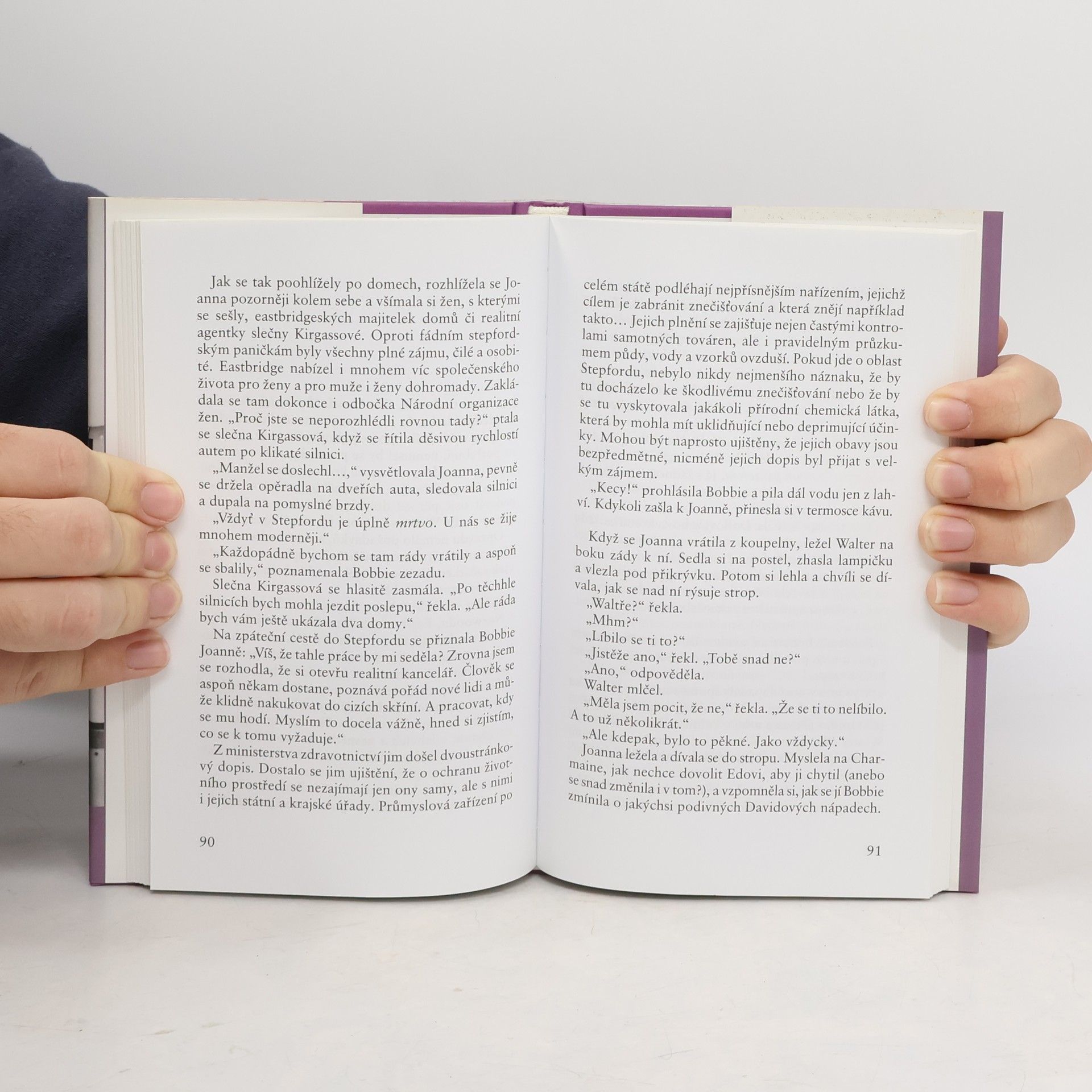 Jaké tajemství skrývá městečko Stepford za leskem fasád luxusních domů? Proč zdejší muži tráví svůj volný čas v uzavřené společnosti pánského klubu? Vždyť doma je čekají ženy naplňující ideál amerických manželek - krásné, milující a povinnosti zvládající na jedničku. Když se do Stepfordu nastěhuje Joanna Eberhartová s manželem Waltrem, netuší, že sen o skvělém životě se může snadno změnit v noční můru... Literární kritika vyzdvihuje, že Ira Levin je ve svých zastřeně hororových prózách schopen vyslovit i cosi podstatného o "chorobách" naší doby. Platí to i o této knize, jejíž poselství inspirovalo celé generace filmových tvůrců k mnoha adaptacím.