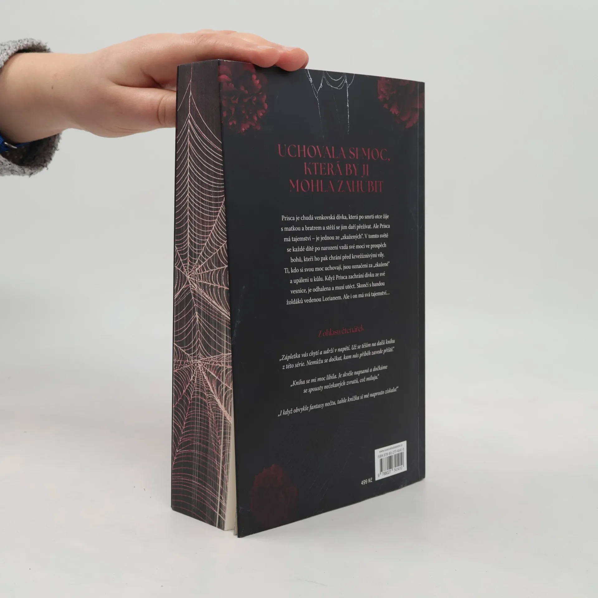 Po celá léta, když Prisca usínala, se jí zdálo o muži s podmanivýma zelenýma očima a krutým úsměvem. A skutečně se s ním setká, ovšem za jiných okolností, než by si přála. Nedlouho poté, co se lidé narodí, jim bohové seberou i tu trochu moci, s níž přišli na svět. Na oplátku je pak bohové chrání. Když se člověku podaří uchovat si svoji moc, je označený za zkaženého a je upálen. A právě to se přihodí Prisce. Její zakázaná moc je odhalena, a proto musí uprchnout ze své malé vesnice a pohodlného života. Aby přežila, musí uzavřít dohodu se žoldákem – Prisca pomůže jemu a jeho tajemným přátelům proniknout do města a oni ji naučí ovládat její vlastní tajemství a temnou moc, kterou vždy skrývala. Právě tato moc může být klíčem k Prisčině přežití. Jenže Prisca není jediná, kdo má tajemství. Žoldák skrývá svá vlastní. Tajemství, která ohrožují bezpečí všech, které Prisca miluje. Tajemství, která mohou rozvrátit nejen království, ale i celý svět.