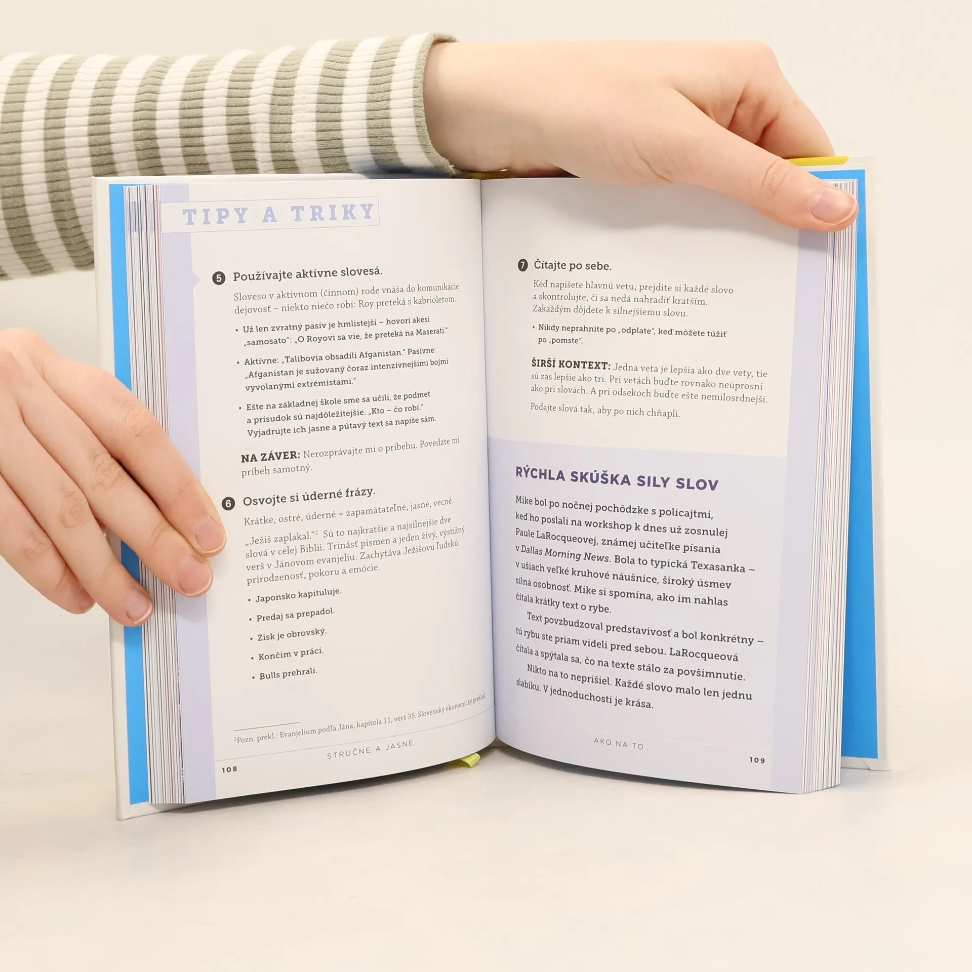 Píšte a vyjadrujte sa kratšie, výstižnejšie, a uvidíte, že vás už nikdy neprehliadnu! Ako sa presadiť v šume tisícok slov, ktoré na nás útočia z médií a sociálnych sietí? Ako- docieliť, aby vás druhí nielen neprehliadli, ale aj presne pochopili pointu, o ktorú sa potrebujete podeliť? Čiuž píšete newslettre, príspevky na sociálne siete, moderujete alebo vediete ľudí, táto stručná a jasná vizuálna príručka od skúsených novinárov vás naučí, ako sa vyjadrovať vecne a úderne a ako nezahltiť čitateľa či poslucháča slovnou vatou. Ponúkne vám desiatky tipov a trikov na výber vhodných slov, nájdete v nej návody, ako sa zbaviť komunikačných zlozvykov a donúti vás sústreďovať sa na potreby čitateľa a na pointu, na ktorej vám záleží. Zistíte, ako vytvoriť pútavú návnadu – teda ako pritiahnuť pozornosť na seba, ako má znieť výrazná úvodná veta a ako na malom priestore povedať oveľa, oveľa viac. Vďaka týmto jednoduchým a jasným pravidlám sa stanete majstrom komunikácie a vedenia ľudí, ušetríte vzácny čas sebe aj svojmu okoliu a navyše sa už nikdy nestratíte v balaste zbytočných slov.