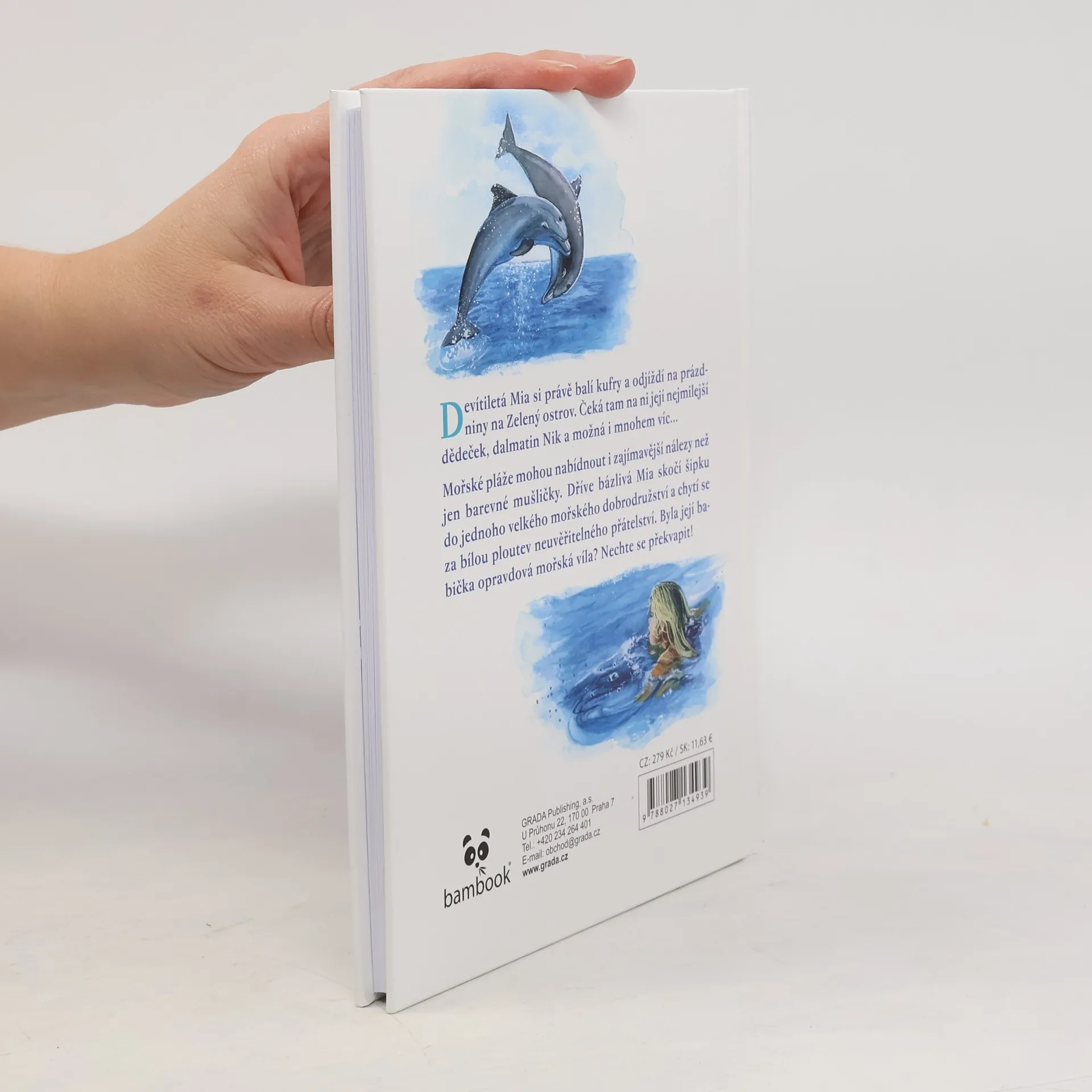Devítiletá Mia si právě balí kufry a odjíždí na prázdniny na Zelený ostrov. Čeká tam na ni její nejmilejší dědeček, dalmatin Nik a možná i mnohem víc…Mořské pláže mohou nabídnout i zajímavější nálezy než jen barevné mušličky. Dříve bázlivá Mia skočí šipku do jednoho velkého mořského dobrodružství a chytí se za bílou ploutev neuvěřitelného přátelství. Byla její babička opravdová mořská víla? Nechte se překvapit!