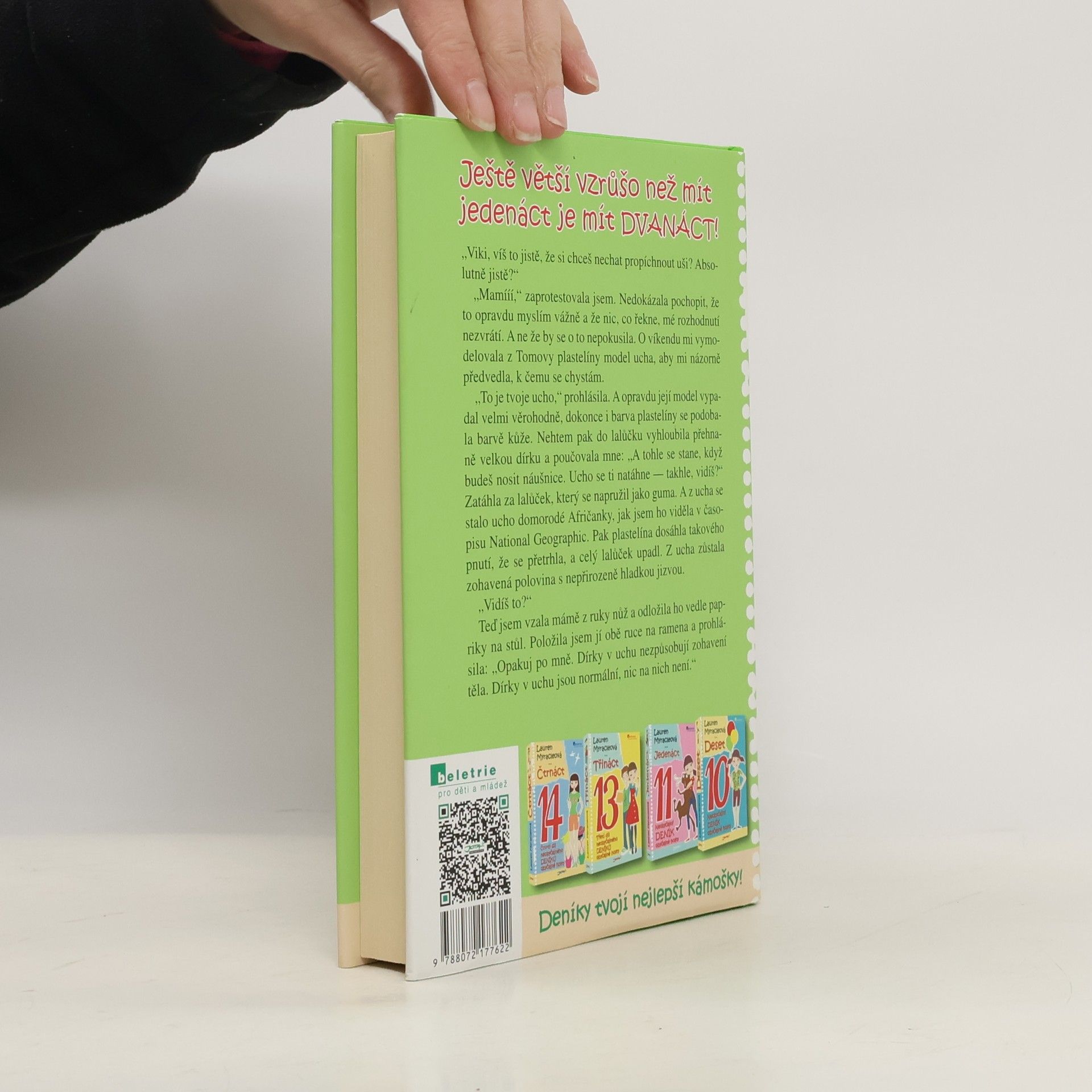 Ještě větší vzrůšo než mít jedenáct je mít DVANÁCT! Viki, veselá, milá a vtipná hrdinka úspěšné knihy JEDENÁCT, je zase o rok starší a dospělejší. Ovšem její někdy spíše úsměvné, jindy vážnější trable a nedorozumění s rodiči, sourozenci, ale hlavně kamarádkami současnými i bývalými a těmi, s nimiž se nikdy přátelit nehodlá, jí život rozhodně neulehčují. Viki zjišťuje, jak hořce chutná zrada ze strany blízkého člověka, ale zakouší i stud nad svým chováním, když i ona dokáže ublížit. A navíc si musí zvyknout na spoustu novinek, jako jsou například lesky na rty, noví spolužáci, letní tábory, ženské prádlo a hlavně KLUCI!