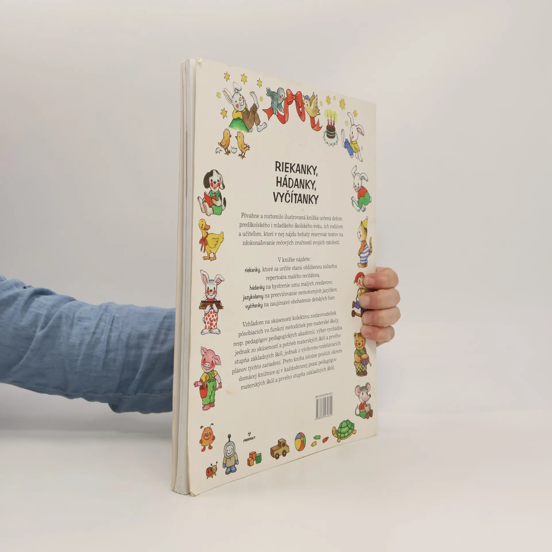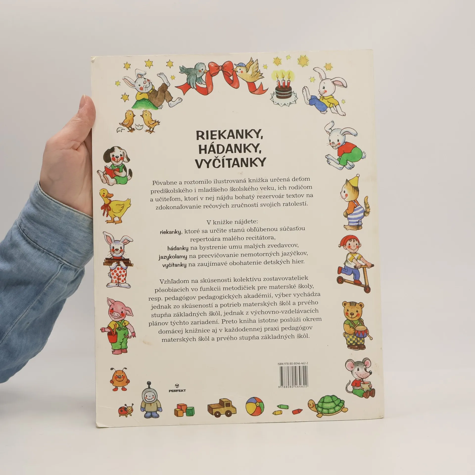Aj vám sa už stalo, že ste chceli svoje dieťa doučiť básničku, ktorú si nezapamätalo zo škôlky, ale ani vy ste si nevedeli spomenúť na jej slová? Pôvabne a roztomilo ilustrovaná knižka Riekanky, hádanky, vyčítanky vám v tomto výborne poradí. Je určená deťom predškolského i mladšieho školského veku, ich rodičom a učiteľom, ktorí v nej nájdu bohatý rezervoár textov na zdokonaľovanie rečových zručností svojich ratolestí.V knižke nájdete:RIEKANKY, ktoré sa určite stanú obľúbenou súčasťou repertoára malého recitátora,HÁDANKY na bystrenie umu malých zvedavcov,JAZYKOLAMY na precvičovanie nemotorných jazýčkov aVYČÍTANKY na zaujímavé obohatenie detských hier.