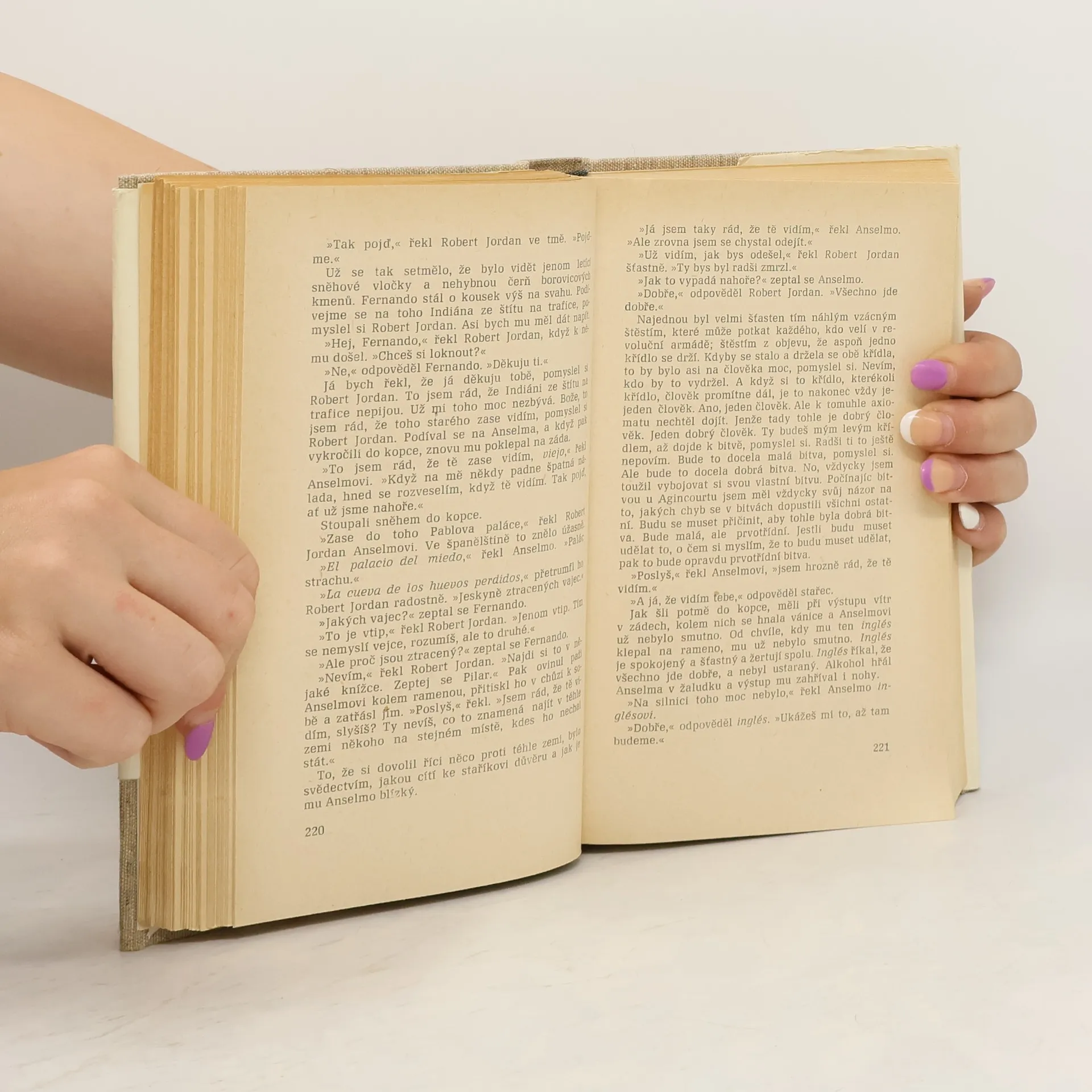 Od svého prvního setkání s autorem jsem měla obrovská očekávání. Doslova jsem čekala, že mě jeho styl a kniha posadí na zadek, ale nestalo se tak. Dialogy jsou velmi zvláštně napsané. Hemingway často dialogy opakuje klidně nekolikrát za sebou a to mi upřímně lezlo strašně na nervy. Stejně tak jako neustále se opakující jméno Robert Jordan. Robert Jordan udělal tohle, Robert Jordan udělal tamto. Bylo to velmi otravné. Moc tomu nepřispěly ani zdlouhavé a nudné filozofické myšlenky hlavní postavy. Celkově byl pro mě příběh dost o ničem, dokonce i ta romantická linka byla dost odtažitá, stejně jako zbytek knihy.