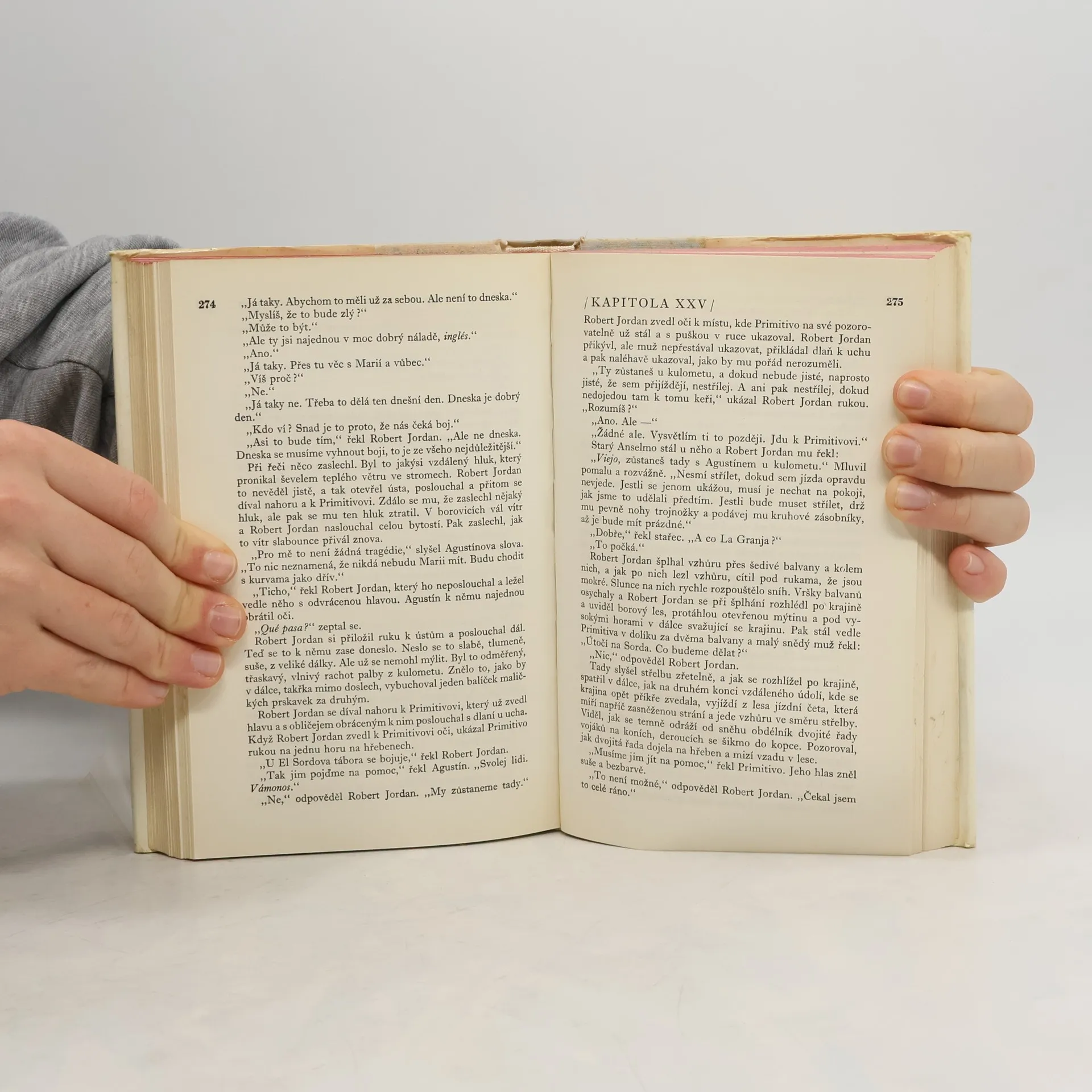 Od svého prvního setkání s autorem jsem měla obrovská očekávání. Doslova jsem čekala, že mě jeho styl a kniha posadí na zadek, ale nestalo se tak. Dialogy jsou velmi zvláštně napsané. Hemingway často dialogy opakuje klidně nekolikrát za sebou a to mi upřímně lezlo strašně na nervy. Stejně tak jako neustále se opakující jméno Robert Jordan. Robert Jordan udělal tohle, Robert Jordan udělal tamto. Bylo to velmi otravné. Moc tomu nepřispěly ani zdlouhavé a nudné filozofické myšlenky hlavní postavy. Celkově byl pro mě příběh dost o ničem, dokonce i ta romantická linka byla dost odtažitá, stejně jako zbytek knihy.