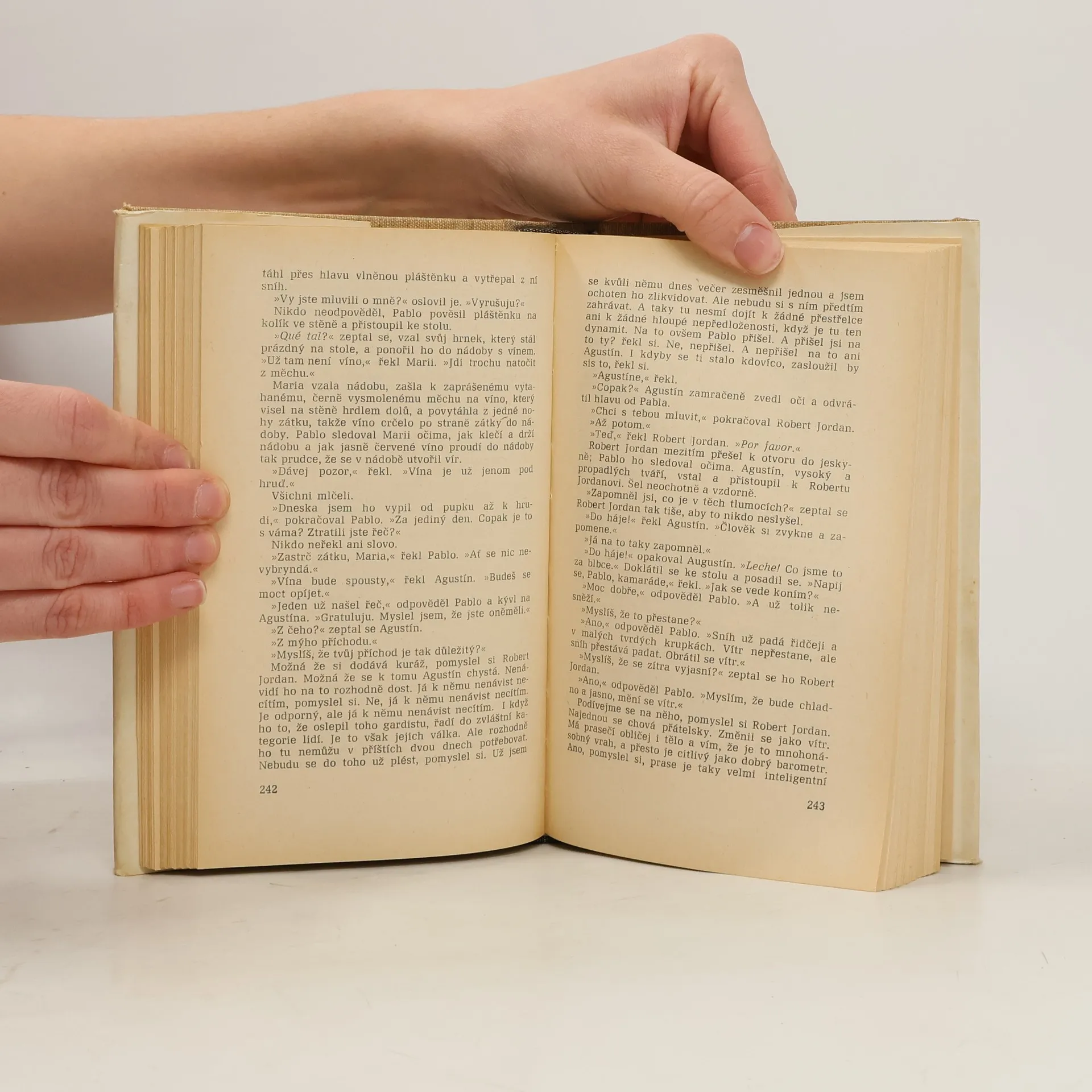Od svého prvního setkání s autorem jsem měla obrovská očekávání. Doslova jsem čekala, že mě jeho styl a kniha posadí na zadek, ale nestalo se tak. Dialogy jsou velmi zvláštně napsané. Hemingway často dialogy opakuje klidně nekolikrát za sebou a to mi upřímně lezlo strašně na nervy. Stejně tak jako neustále se opakující jméno Robert Jordan. Robert Jordan udělal tohle, Robert Jordan udělal tamto. Bylo to velmi otravné. Moc tomu nepřispěly ani zdlouhavé a nudné filozofické myšlenky hlavní postavy. Celkově byl pro mě příběh dost o ničem, dokonce i ta romantická linka byla dost odtažitá, stejně jako zbytek knihy.