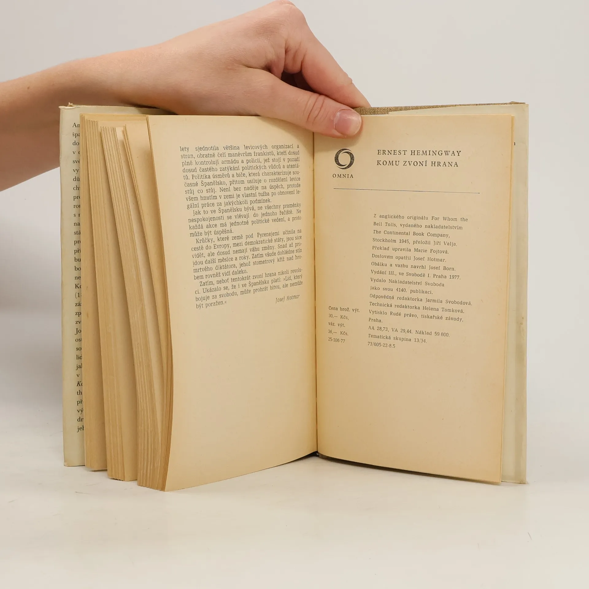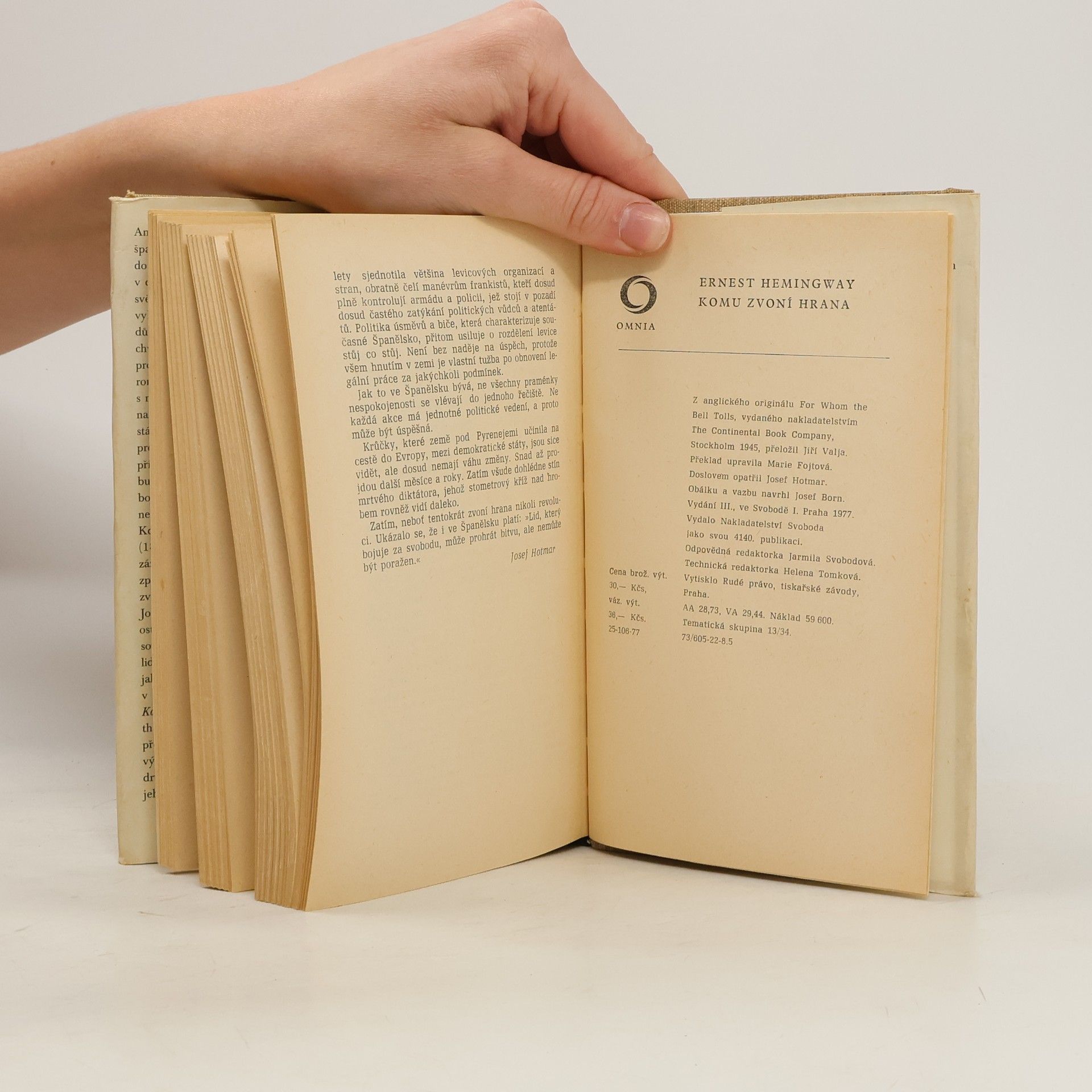 Komu zvoní hrana, Ernest Hemingway, Jiří Valja