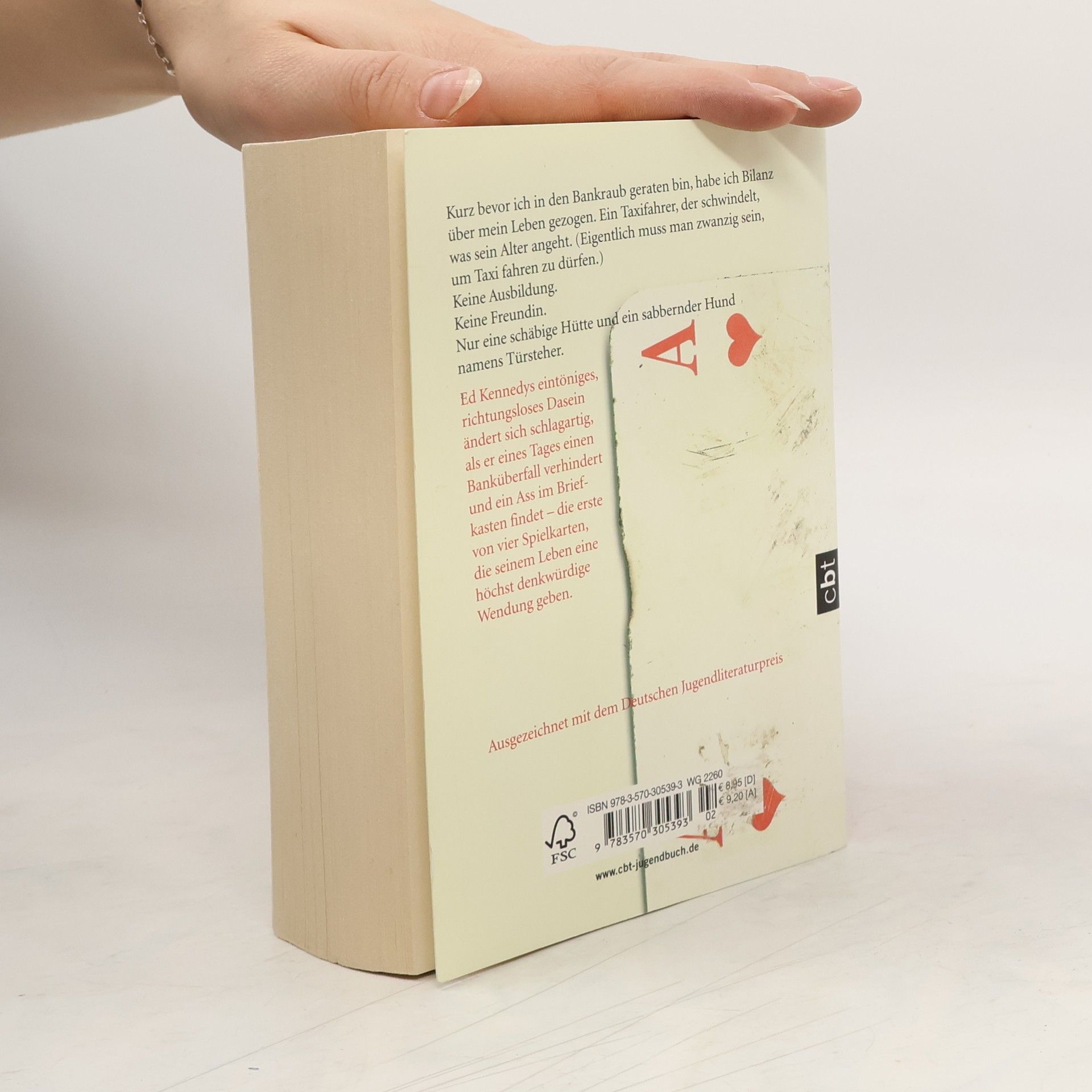 Deutscher Jugendliteraturpreis 2007 In Eds Briefkasten liegt – eine Spielkarte. Ein Karo-Ass. Darauf stehen drei Adressen. Die Neugier treibt ihn hin zu diesen Orten, doch was er dort sieht, bestürzt ihn zutiefst: drei unerträglich schwere Schicksale, Menschen, die sich nicht selbst aus ihrem Elend befreien können. Etwas in Ed schreit: 'Du musst handeln! Tu endlich was!' Dreimal fasst er sich ein Herz, dreimal verändert er Leben. Da flattert ihm die nächste Karte ins Haus. Wieder und wieder ergreift Ed die Initiative – doch wer ihn auf diese eigenartige Mission geschickt hat, ist ihm völlig schleierhaft. Eine Geschichte über Zivilcourage, ungeheuer spannend und mit viel Situationskomik erzählt.