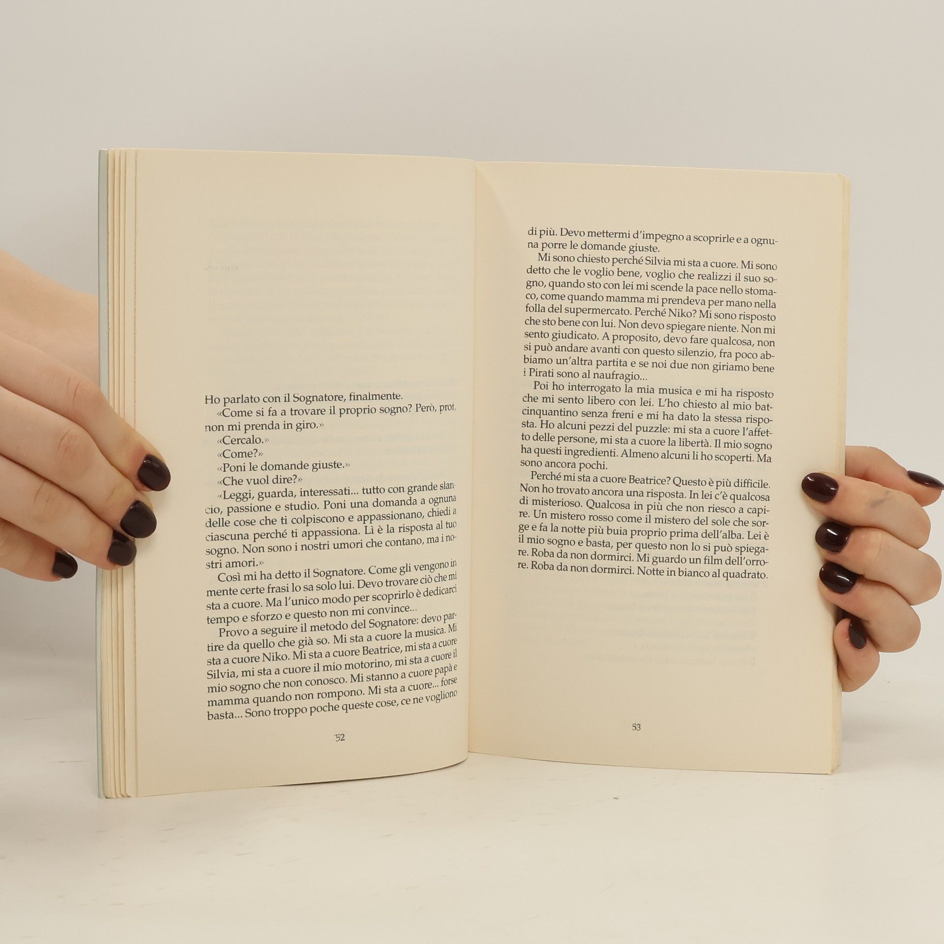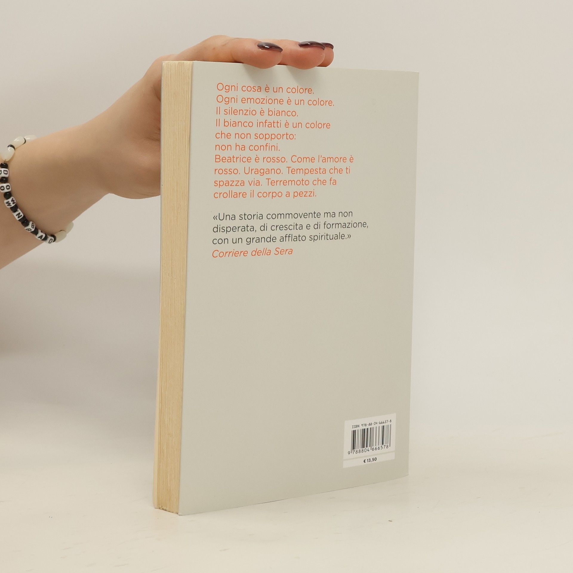 "Leo è un sedicenne come tanti: ama le chiacchiere con gli amici, il calcetto, il suo iPod. Le ore passate a scuola sono uno strazio, ma il nuovo supplente di storia e filosofia è diverso: una luce gli brilla negli occhi quando spiega, quando sprona gli studenti a vivere intensamente, a cercare il proprio sogno. Leo sente in sé la forza di un leone, ma c'è un nemico che lo atterrisce: il bianco. Il rosso invece è il colore dell'amore, della passione, del sangue; rosso è il colore dei capelli di Beatrice. Perché un sogno Leo ce l'ha e si chiama Beatrice, anche se lei ancora non lo sa. Quando scopre che Beatrice è ammalata e che la malattia ha a che fare con quel bianco che tanto lo spaventa, Leo dovrà scavare a fondo dentro di sé, sanguinare e rinascere, per capire che i sogni non possono morire e trovare il coraggio di credere in qualcosa di più grande." (source : éditeur)