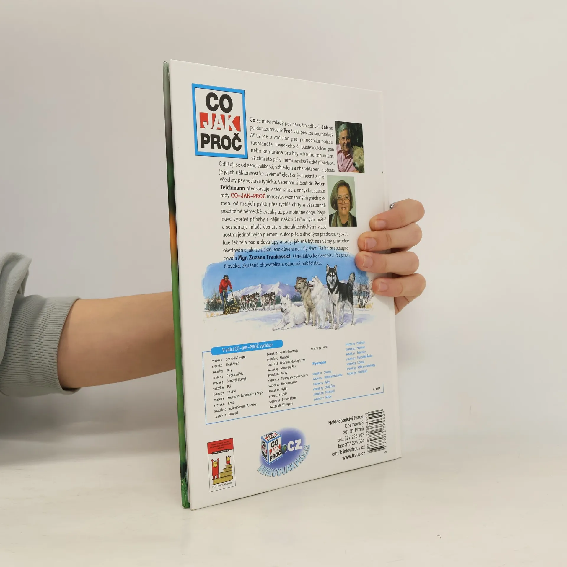 Co se musí mladý pes naučit nejdříve? Jak se dorozumívají psi? Proč vidí pes i za soumraku? Ať již jde o vodicího psa, pomocníka policie, záchranáře, loveckého či pasteveckého psa nebo kamaráda pro hry v kruhu rodinném všichni tito psi s námi navázali úzké přátelství. Odlišují se velikostí, podobou a charakterem a přesto je jejich náklonnost ke svému člověku jedinečná a pro psy jako celek veskrze typická. Veterinární lékař dr. Peter Teichmann představuje množství významných psích plemen, od malých psíků, přes rychlé chrty a všestranně použitelné německé ovčáky až po mohutné dogy. Napínavě vypráví příběhy z dějin našich čtyřnohých přátel a seznamuje mladé čtenáře s charakteristickými vlastnostmi jednotlivých plemen. Autor píše o divokých předcích, vysvětluje řeč těla psa a dává tipy a rady, jak má být náš věrný průvodce ošetřován a jak lze získat jeho důvěru na celý život.