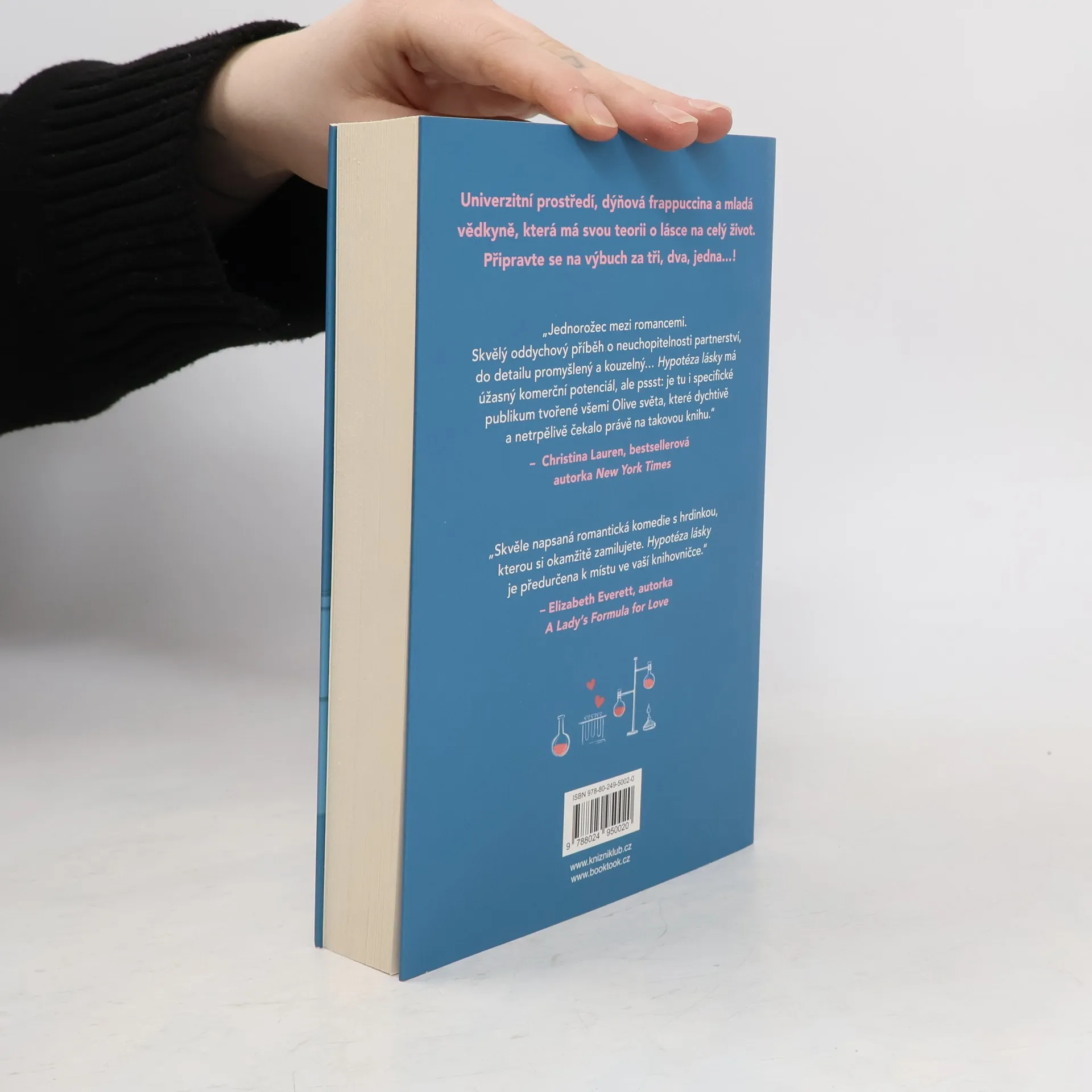 Romantická komedie, která zbořila sociální sítě! Olive je doktorandka na Stanfordu. Na trvalé romantické vztahy příliš nevěří, zato její nejlepší kamarádka ano. Takže pokud ji chce přesvědčit, že s někým randí a její milostný život nabral správný směr, musí na to jít chytře. Vědci totiž potřebují důkazy. Proto Olive, jako každá jiná sebevědomá bioložka, zpanikaří a políbí prvního muže, na kterého narazí – Adama Carlsena. Mladý, v oboru uznávaný profesor má pověst přísného školitele. Byl tak jejich polibek největší chybou, kterou Olive v životě udělala, nebo se tohle setkání může vyvinout v něco víc? Kniha obsahuje také bonusovou kapitolu.