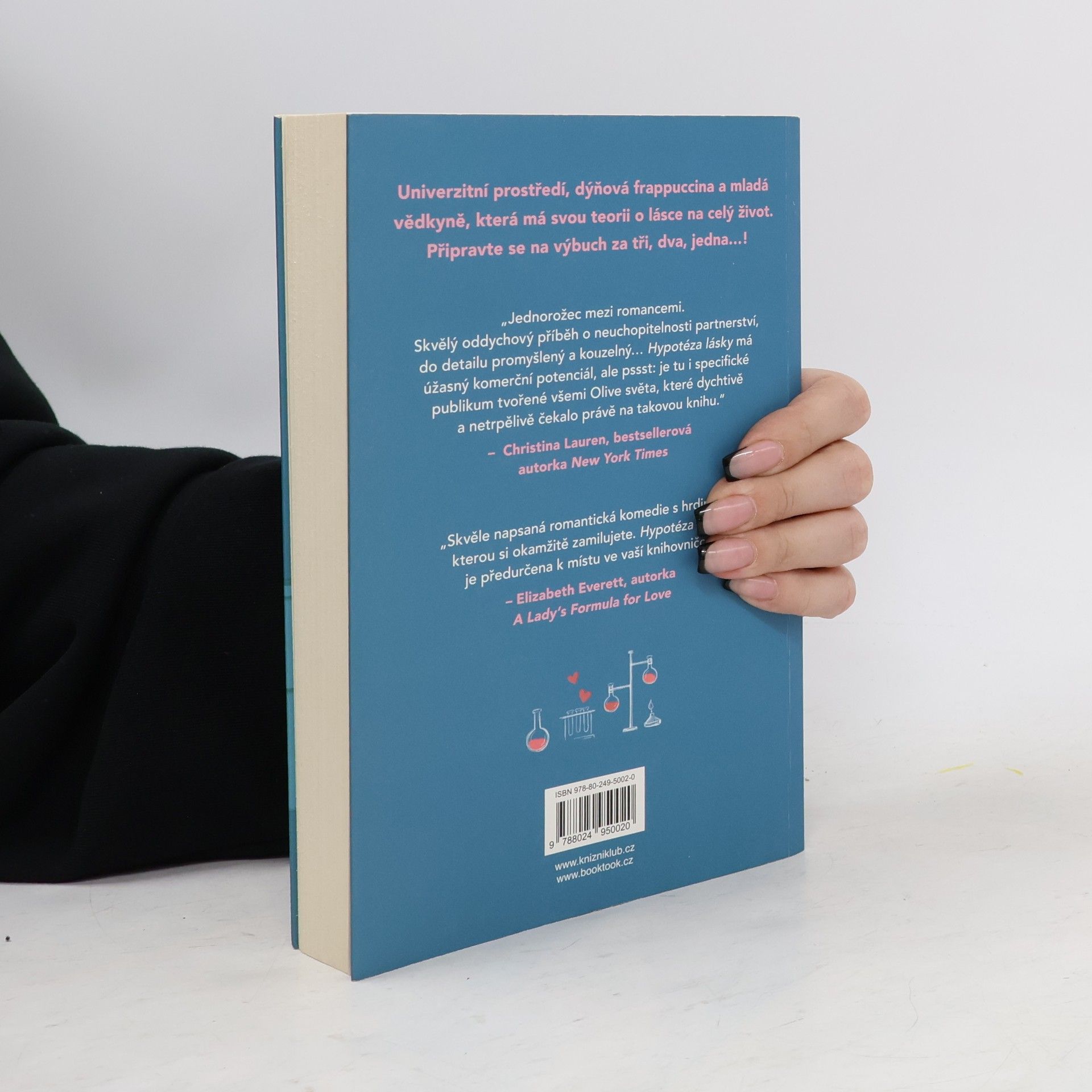 Romantická komedie, která zbořila sociální sítě! Olive je doktorandka na Stanfordu. Na trvalé romantické vztahy příliš nevěří, zato její nejlepší kamarádka ano. Takže pokud ji chce přesvědčit, že s někým randí a její milostný život nabral správný směr, musí na to jít chytře. Vědci totiž potřebují důkazy. Proto Olive, jako každá jiná sebevědomá bioložka, zpanikaří a políbí prvního muže, na kterého narazí – Adama Carlsena. Mladý, v oboru uznávaný profesor má pověst přísného školitele. Byl tak jejich polibek největší chybou, kterou Olive v životě udělala, nebo se tohle setkání může vyvinout v něco víc? Kniha obsahuje také bonusovou kapitolu.