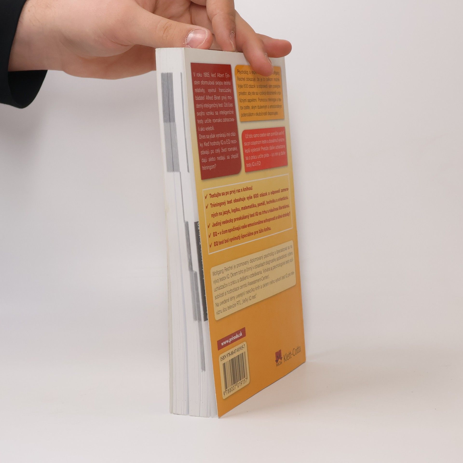 V roku 1905, keď Albert Einstein sformuloval svojou teóriu relativity, vyvinul francúzsky bádateľ Alfred Binet prvý moderný inteligenčný test. Od čias svojho vzniku sa inteligenčné testy určite rovnako zatracovali ako velebili. Dnes sa však vynárajú iné otázky: Keď hodnoty IQ a EQ nezostávajú po celý život rovnaké, dajú alebo nedajú sa zlepšiť tréningom? Psychológ a expert na testy IQ Wolfgang Reichel dokazuje, že je to celkom možné. Vyše 600 otázok a odpovedí vám poskytne priestor, aby ste sa v pokoji oboznámili s rozličnými aspektmi. Pomocou tréningov a testov zistíte, akým duševným a emocionálnym potenciálom v skutočnosti disponujete.