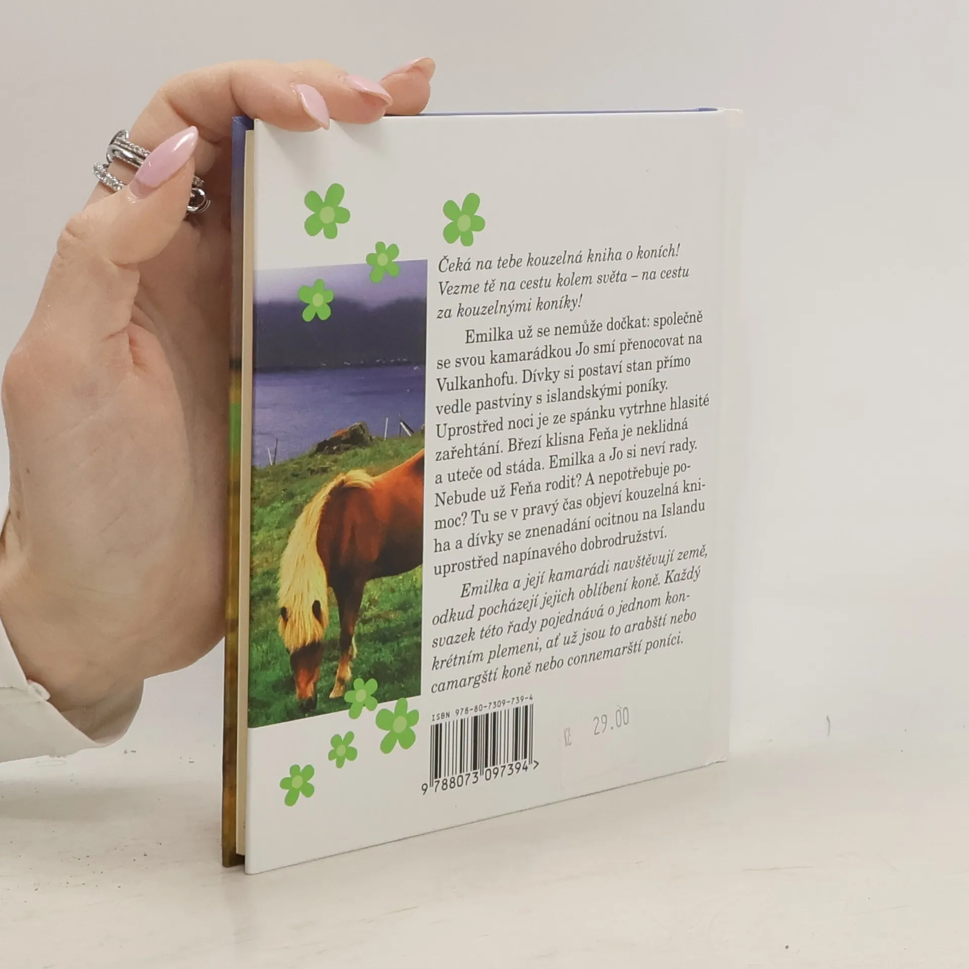 Čeká na tebe kouzelná kniha o koních! Vezme tě na cestu kolem světa - na cestu za kouzelnými koníky! Emilka už se nemůže dočkat: společně se svou kamarádkou Jo smí přenocovat na Vulkanhofu. Dívky si postaví stan přímo vedle pastviny s islandskými poníky. Uprostřed noci je ze spánku vytrhne hlasité zařehtání. Březí klisna Feňa je neklidná a uteče od stáda. Emilka a Jo si neví rady. Nebude už Feňa rodit? A nepotřebuje pomoc? Tu se v pravý čas objeví kouzelná kniha a dívky se znenadání ocitnou na Islandu uprostřed napínavého dobrodružství. Emilka a její kamarádi navštěvují země, odkud pocházejí jejich oblíbení koně. Každý svazek této řady pojednává o jednom konkrétním plemeni, ať už jsou to arabští nebo camargští koně nebo connemarští poníci.