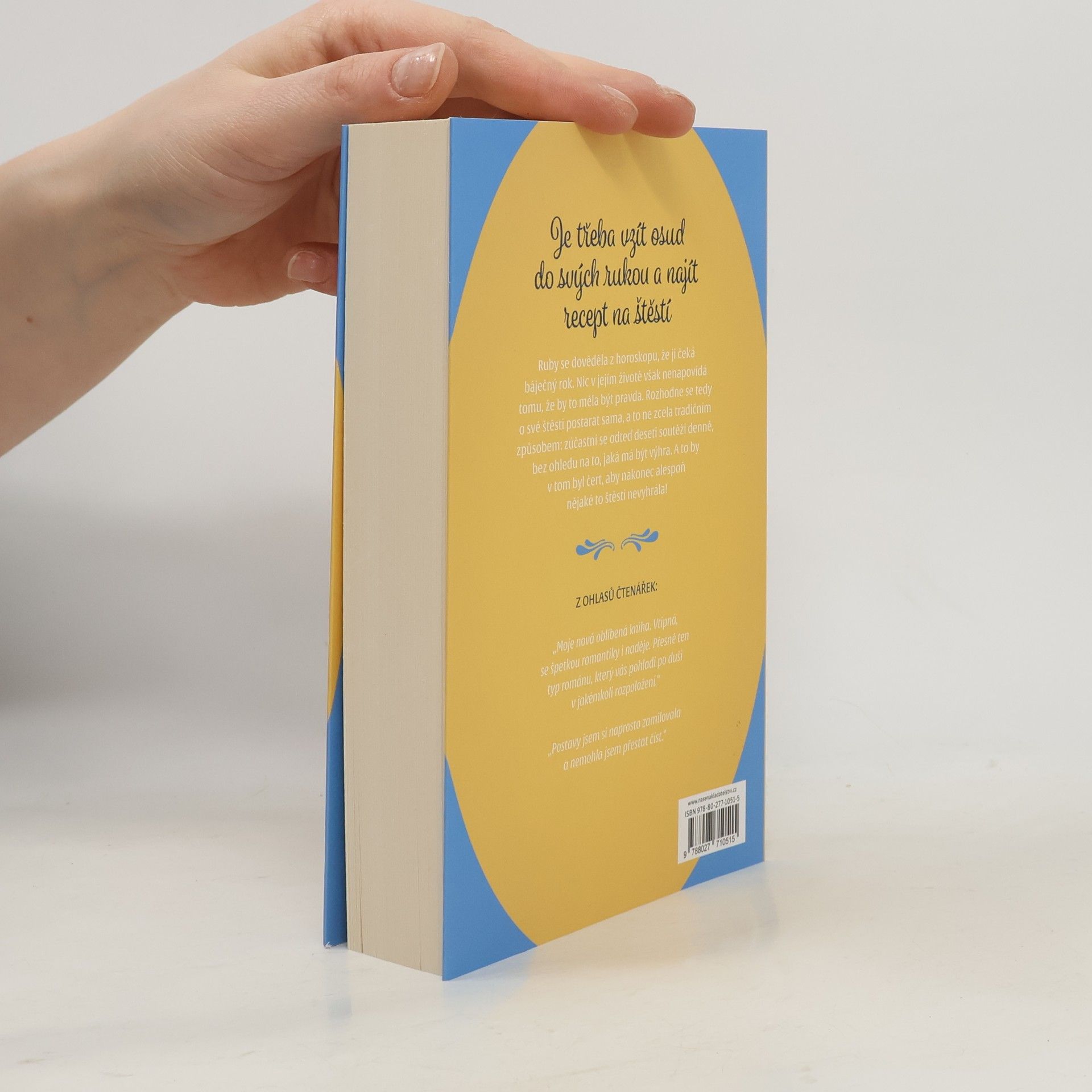 Špetku štěstí a hrstku osudu...Ruby Brooksová je nejdřív poněkud skeptická, když jí horoskop říká, že bude mít báječný rok. Zvláště když v rychlém sledu přijde o přítele i o práci. A aby toho nebylo málo, ještě jí utekl zlotřilý montér kuchyně a vzal s sebou všechno včetně kuchyňského dřezu!Ruby tedy bere štěstí i osud do svých rukou s neobvyklým předsevzetím – zúčastní se deseti soutěží denně, ať už o vysněnou japonskou dovolenou nebo o roční zásobu psího žrádla (nemá psa) a vybojovat si cestu ke štěstí naprosto jakýmkoli způsobem.Když se ale zásluhou valentýnské ceny z místní restaurace v jejím životě objeví šéfkuchař Adam Finder (a jeho pes Brutus), je to štěstí nebo osud? A zjistí Ruby nakonec, že skutečné štěstí není třeba vyhrát?Nová romantická komedie, která nadchne fanoušky Jo Watson nebo Rachel Lynn Solomon.