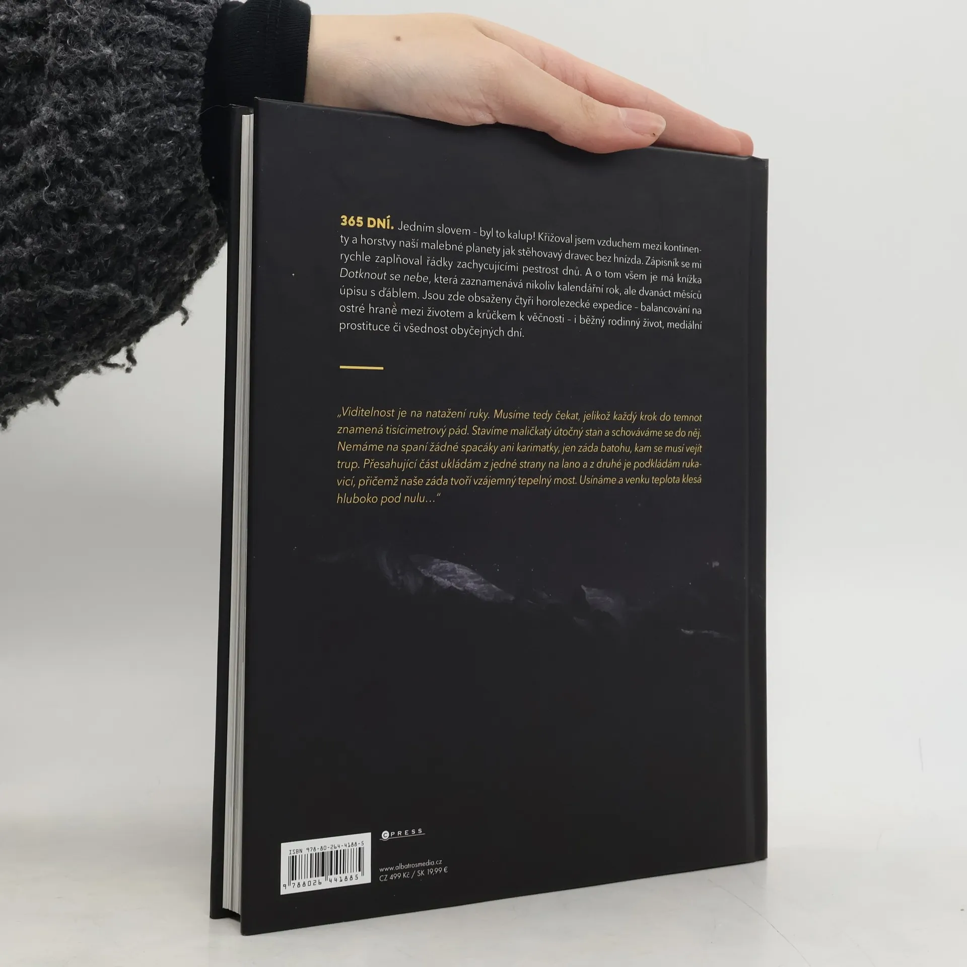 365 dní. Jedním slovem byl to kalup! Křižoval jsem vzduchem mezi kontinenty a horstvy naší malebné planety jak stěhovavý dravec bez hnízda. Deník se mi rychle zaplňoval řádky zachycujícími pestrost dnů. Moje druhá knížka zaznamenává dvanáct měsíců úpisu s ďáblem. Popisuji zde mimo jiné čtyři horolezecké expedice - balancování na ostré hraně, mezi životem a krůčkem k věčnosti, ale také běžný rodinný život, mediální prostituci či všednost obyčejných dní.